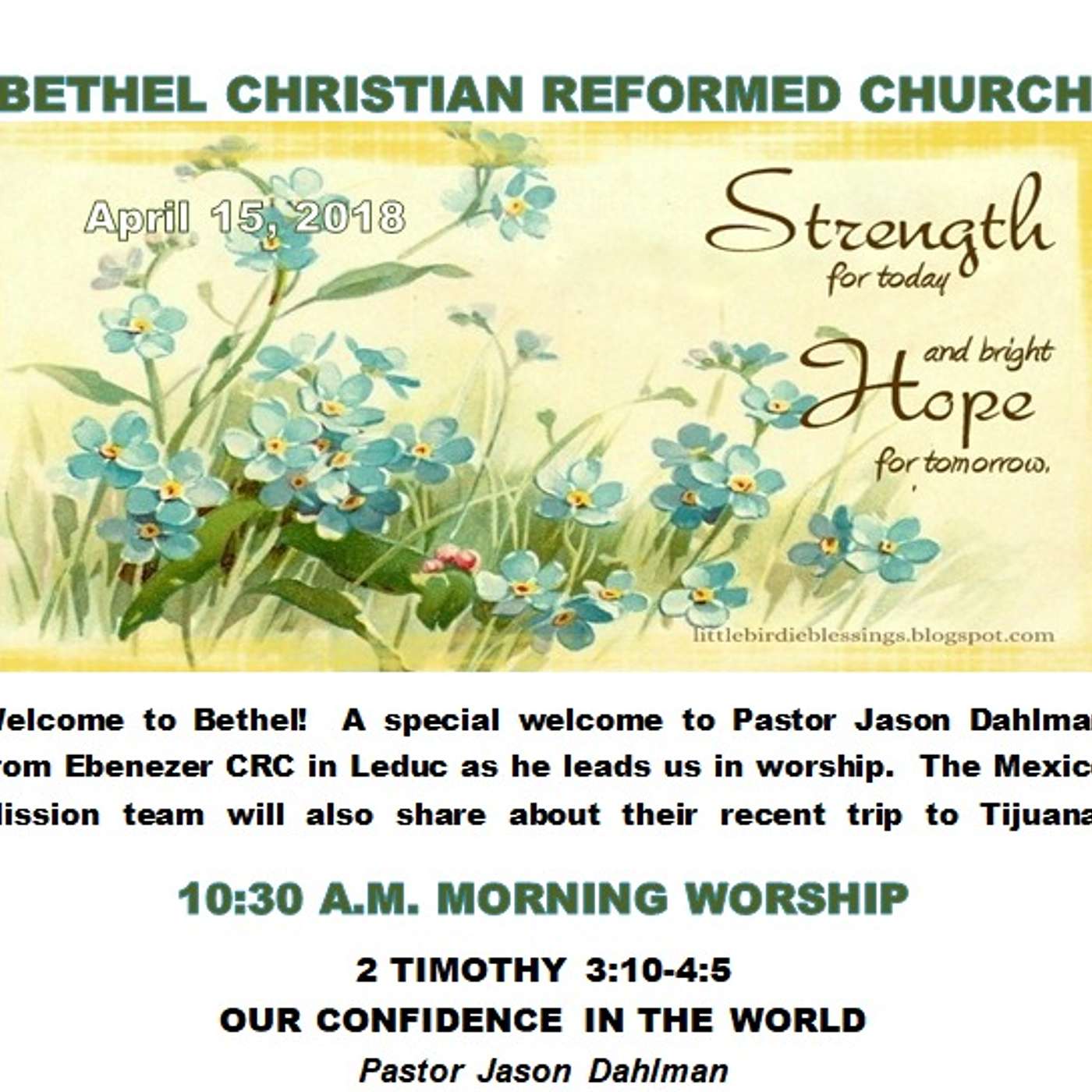 April 15/18 OUR CONFIDENCE IN THE WORLD