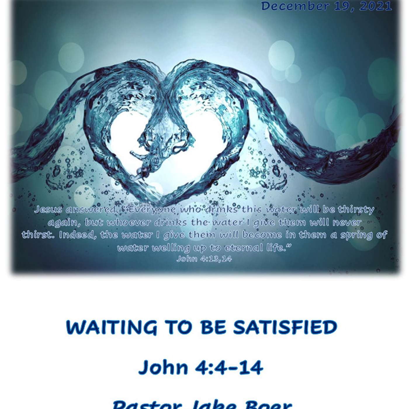 Advent is here! Today we will have a very special Children’s Service. Our children and youth will lead us in Searching For Jesus. Join us as we hear the Christmas story through the words and eyes of our children. We will continue our Advent series What Are You Waiting For? by reflecting on John 4:4-14, Waiting to be Satisfied. The Samaritan woman was searching for something but didn’t really know what until she met Jesus who offered her living water and eternal life. We too wait to fully experience the living water into eternal life that Jesus offers us.