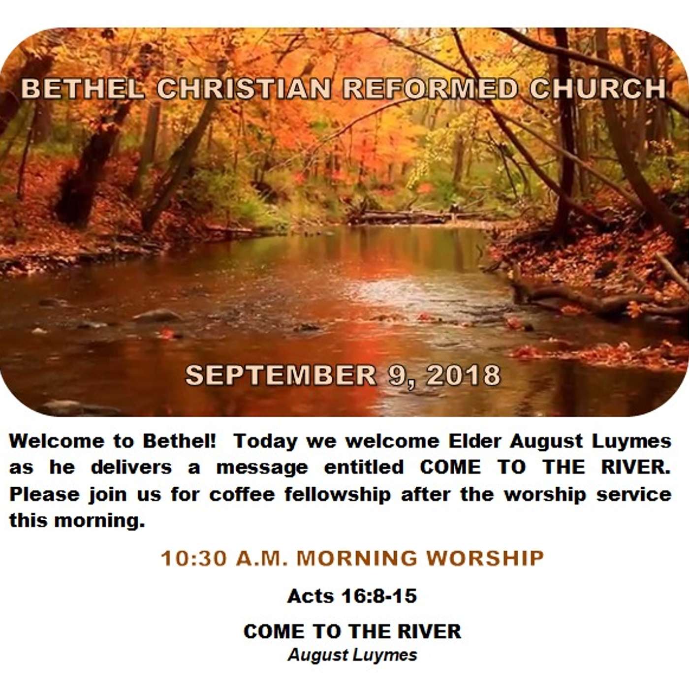 September 09/18 COME TO THE RIVER