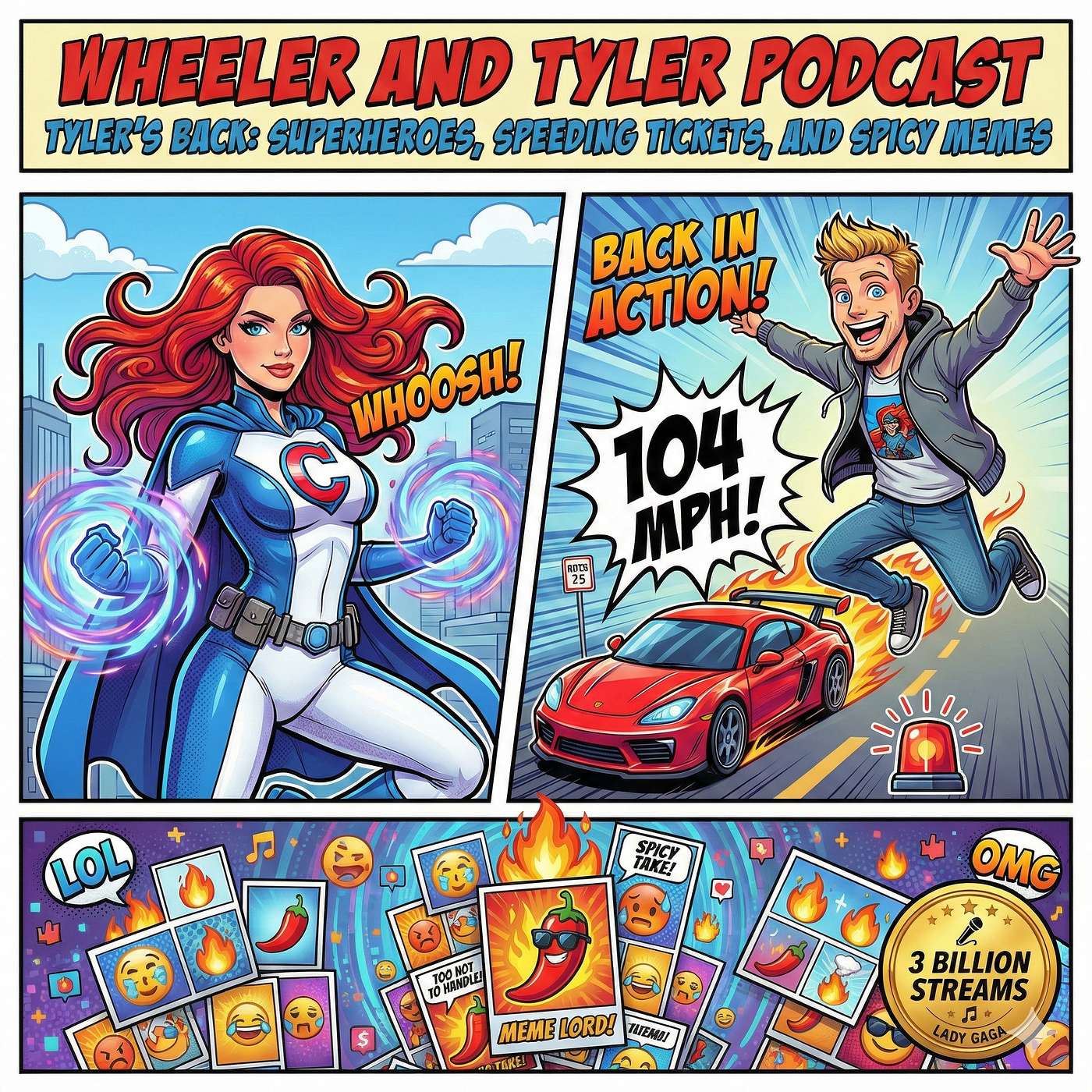 The boys are back in town—well, at least Tyler is! After a two-day hiatus, Tyler Carr returns to the studio to join Dave Wheeler for a Friday jam-packed with "Wait, What?" moments and record-breaking pop royalty. The duo dives into the staggering success of Lady Gaga as "Shallow" hits 3 billion streams, making her a statistical unicorn in the streaming world. Dave breaks down why his wife, Candace Rae, is officially a superhero, while the guys react to the world’s fastest woman, Sha’Carri Richardson, getting a speeding ticket that perfectly fits the "Wait, What" criteria.