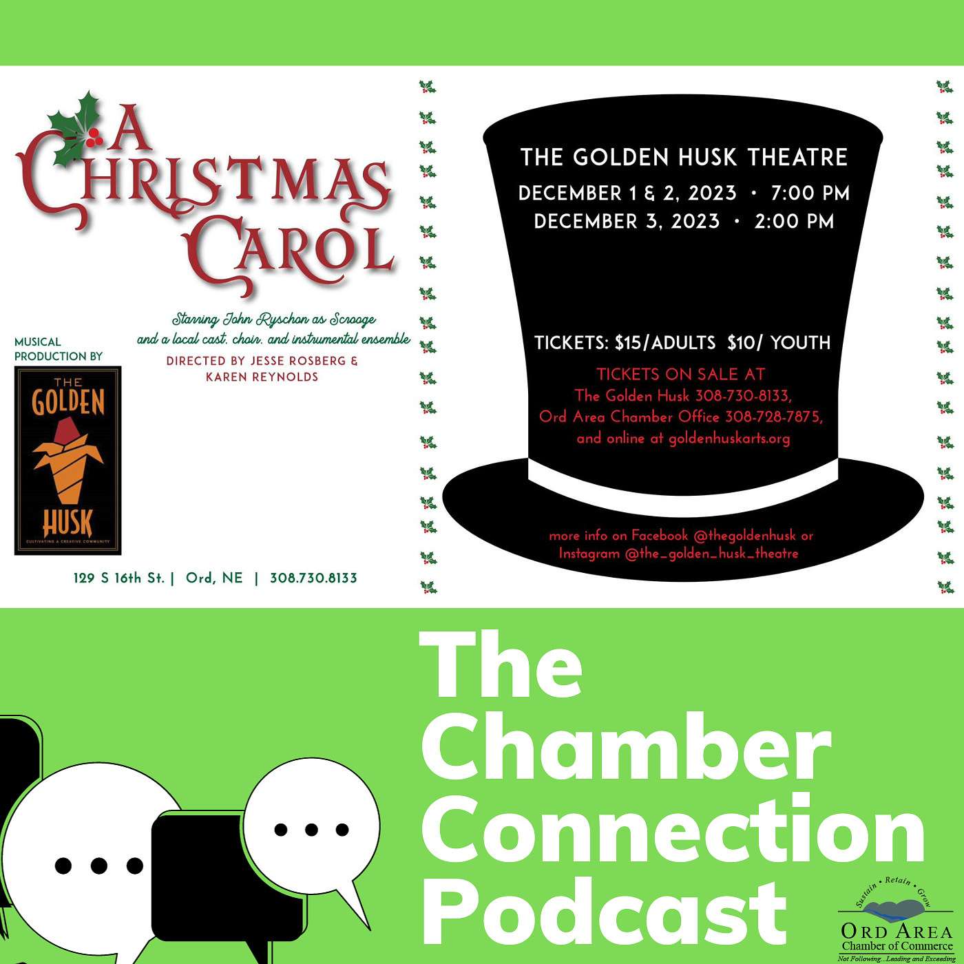 For this episode, Jesse Rosberg and Karen Reynolds, stop by to talk about the upcoming community production of the holiday classic, A Christmas Carol, coming to The Golden Husk on December 1-3, 2023.