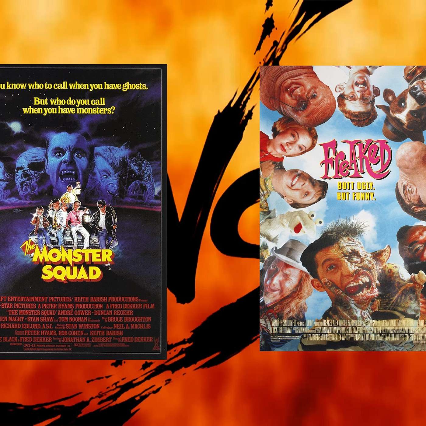 It's Halloween time, lovely spectators, and why not start things off with a monsters vs freaks battle? 1987's Monster Squad is the ultimate answer to "What if The Goonies met the Universal Monsters?" and "What if Wolfman had nards?" 1993's Freaked is Alex Winter's demented dark comic feature follow-up to the short lived nearly forgotten MTV series, The Idiot Box. Also, Dennis- I mean, Randy Quaid is in it. Find out which film comes out on top - according to us.