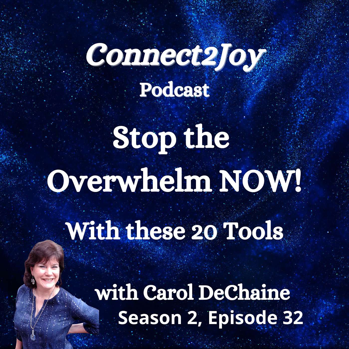 Do you feel so overwhelmed that you don’t know if you are coming or going? Afraid you’ll forget something important? Are you missing deadlines or afraid it’s a symptom of something bigger? Sometimes our mind gets so bogged down and overwhelmed that we can’t think straight and we need a little help. Join your host, Carol DeChaine while she talks about not only what overwhelm is and why we might get it, but more importantly shares 20 tools you can use to banish overwhelm from your life. And you even can experience one of the host’s signature guided meditations to release a specific overwhelm from your life. So if you feel overwhelmed, overburdened, flooded with things to do, buried or inundated, don’t feel alone. We all get that way from time to time, but we can bounce right out of the overwhelm if we have the right tools.