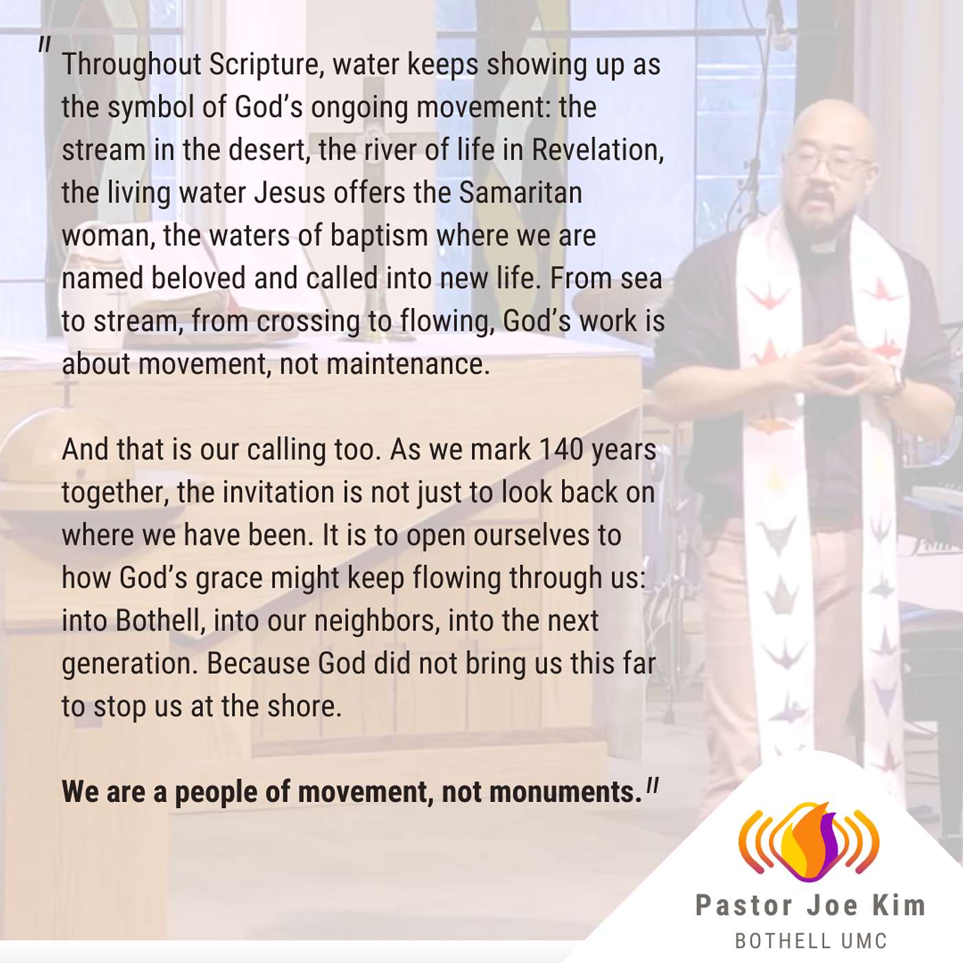 This week, we launch our 140th Anniversary Celebration by turning to the story of the Israelites at the Red Sea. Pastor Joe reminds us that faith is not nostalgia. It is not about recreating what was. It is about stepping toward what could be, even when the way is not clear. How might we live into the new thing that God is doing?