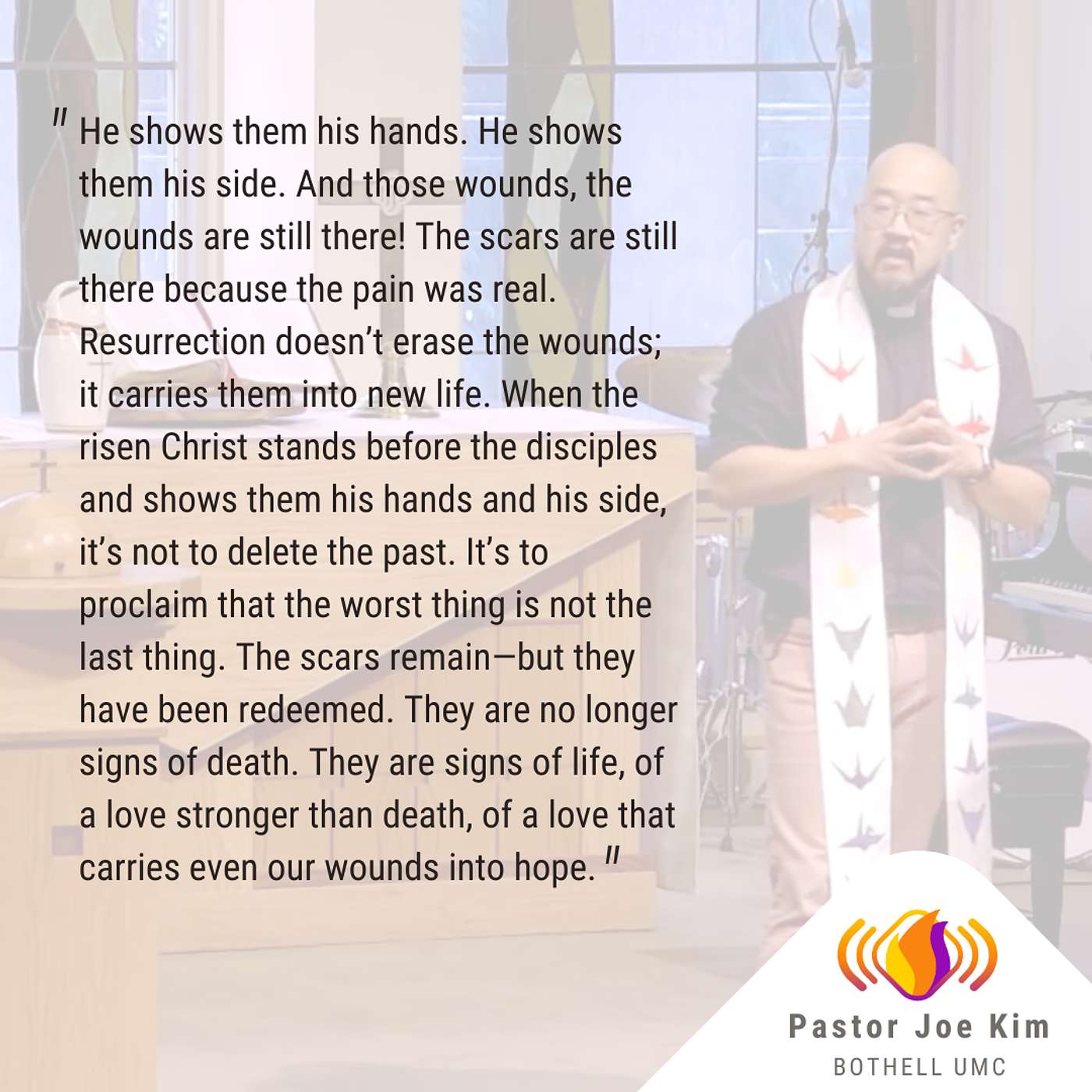 This week, Pastor Joe shares about the disciples' experience of encountering Jesus soon after the Resurrection and challenges us to be resurrected people, not about certainty or lack of doubt, but about belief that is relationship. In a world built on fear and division, how might our faith be one that reaches out, even when it’s scary?