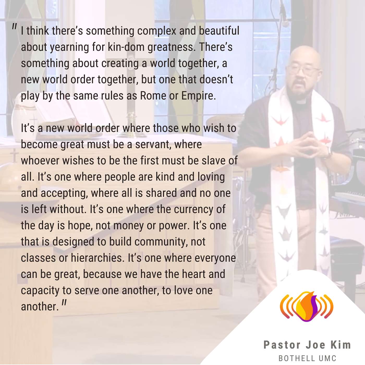 This week, Pastor Joe preaches from Mark 10:35-45 on the complex and beautiful relationship with greatness that James and John have, and how we might experience that greatness together by serving each other this week.