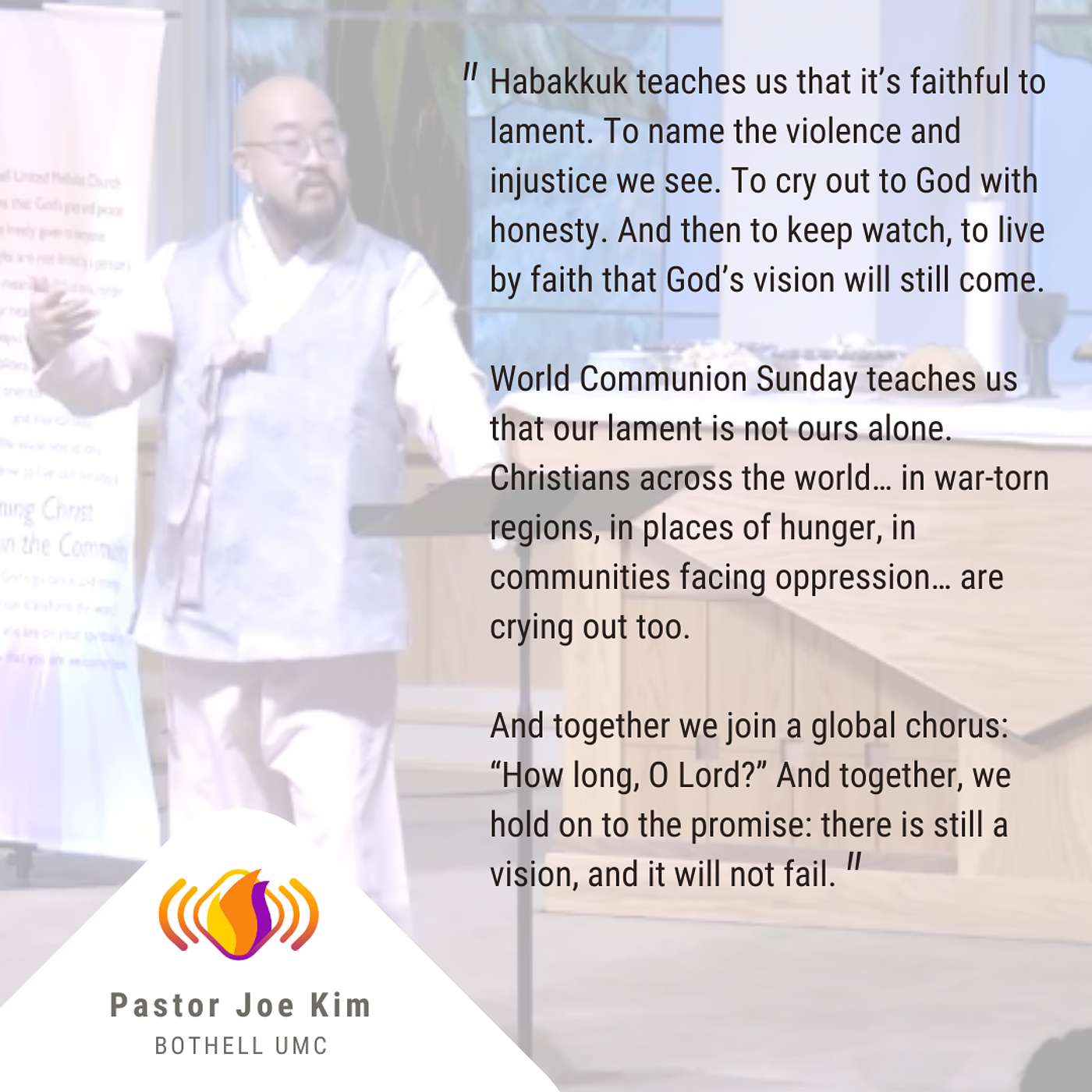 This Sunday, we celebrated World Communion Sunday remembering that we are part of something so much bigger than ourselves, but also that sometimes, the thing that unites us is a collective crying out to God, "How long, O Lord?"