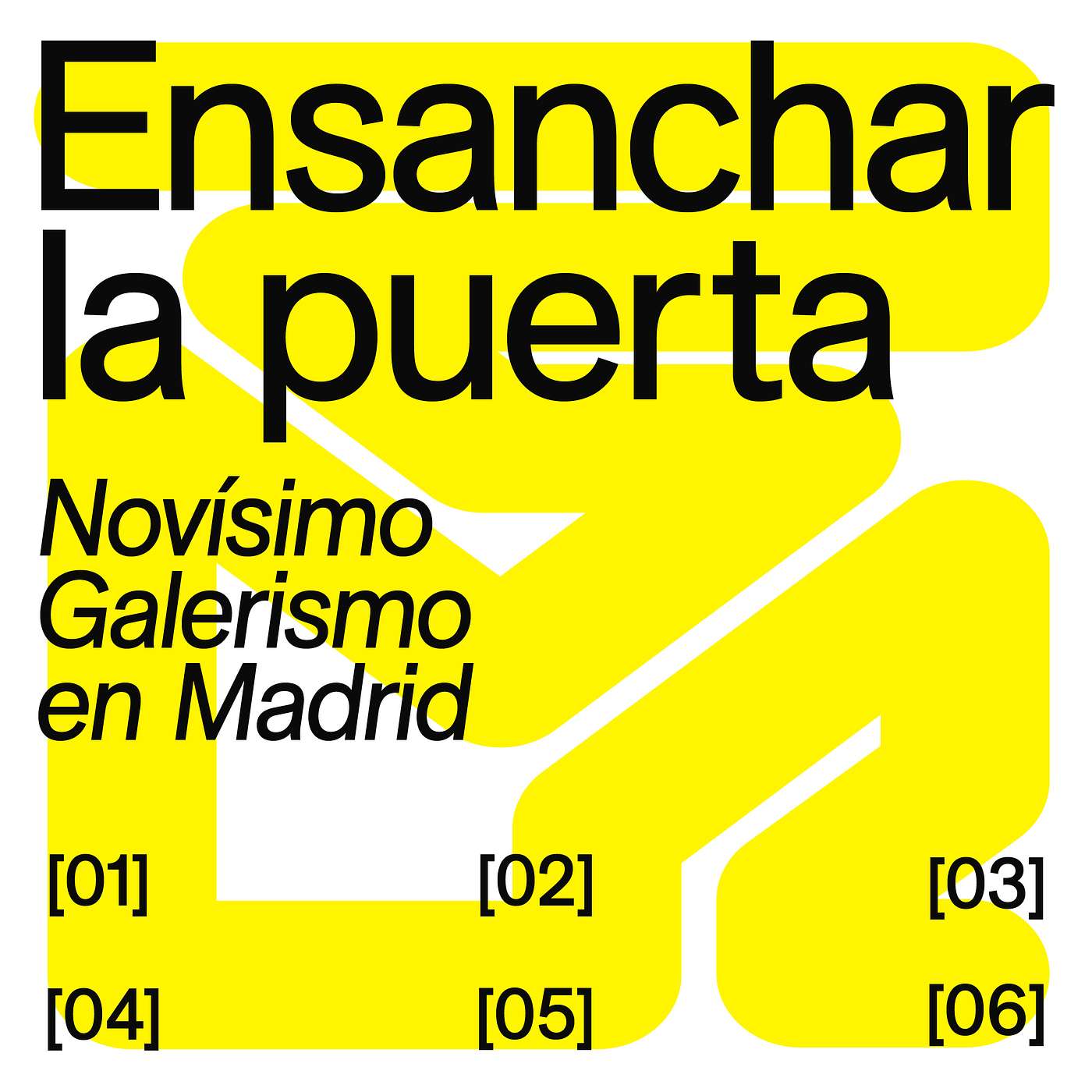 Esta serie de cinco podcasts, forma parte de la exposición "Ensanchar la Puerta. Novísimo Galerismo en Madrid" en CentroCentro y comisariada por Joaquín García Martín. Estos podcasts son una investigación en forma de entrevistas con los responsables de algunos de los proyectos galerísticos más recientes de la capital. Conducidas también por Joaquín, estas entrevistas analizan las particularidades y retos de las galerías jóvenes a través de los ojos de Arniches 26, El Chico, la oficina, Picnic y Pradiauto.