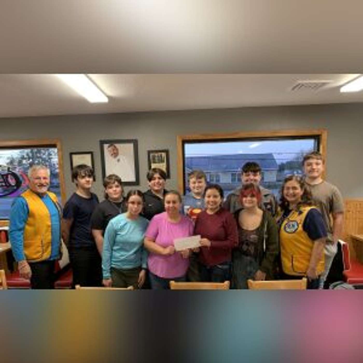Floresville Leos Club President Mercedes Gonzales presents Floresville Food Pantry Director Felicia Villarreal a donation on behalf of the Leos during a club meeting Jan. 21 at JC’s Superburger in Floresville. Leo Club members include: (front row) Club Secretary Isabella Guerrero, Food Pantry Director Felicia Villarreal, President Mercedes Gonzales, Vice President Austyn Hatfield, and outgoing Advisor Juvie Merced, (back row) Advisor Lion Oscar Saucedo, and Leos Paul Lindley, Brayden Coats, Zachary Spoon, Damien Valdez, Treasurer Benjamin Johnson, and Conner Foster.