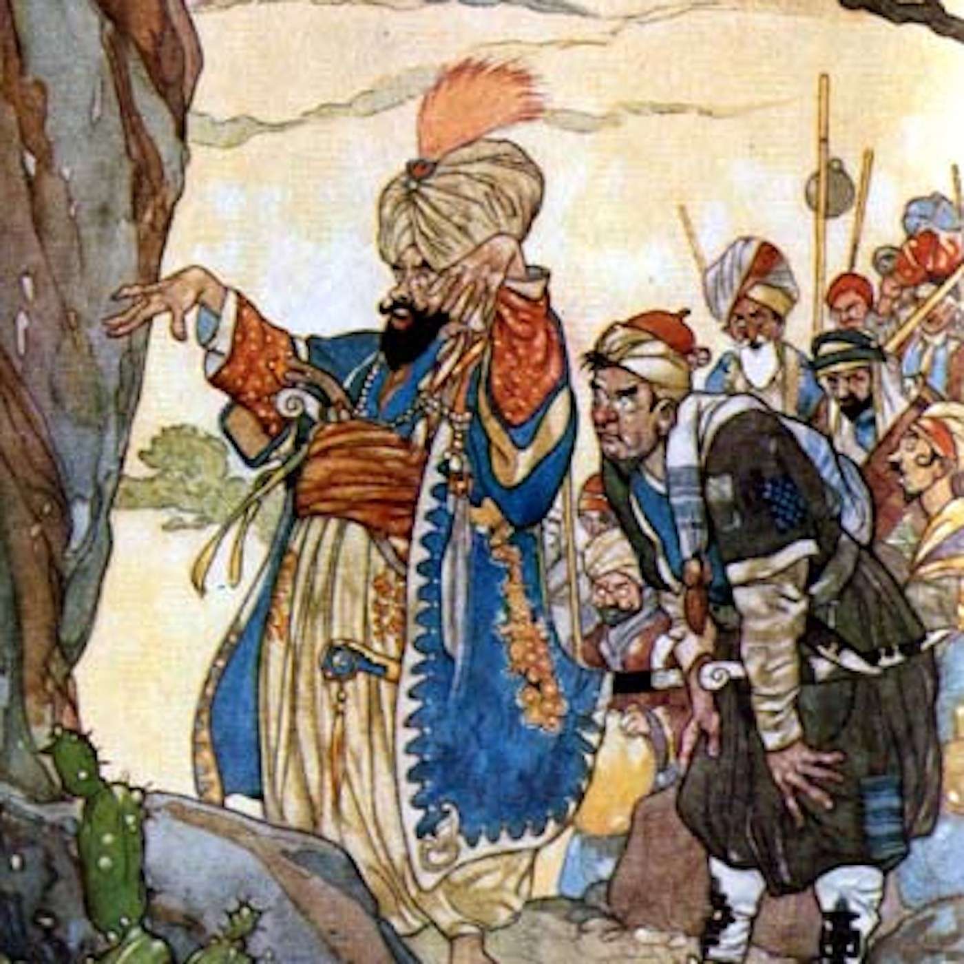 Ali Baba discovers a secret cave that can only be opened by the magic words, "OPEN SESAME!"