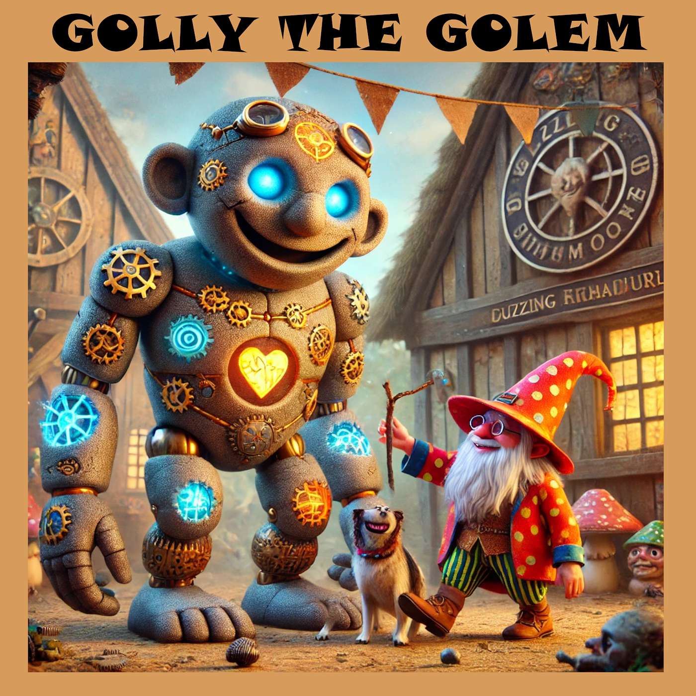 In the magical village of Snaggleton, something AMAZING was happening! 🎉 Wizzlethorp the Wizard 🧙♂️ and Sparky the Gnome 🛠️ were hard at work in Sparky’s wild workshop. The room was filled with cool gadgets, tools, and crazy inventions, but today they were building something truly special—a Golem! 🤖✨