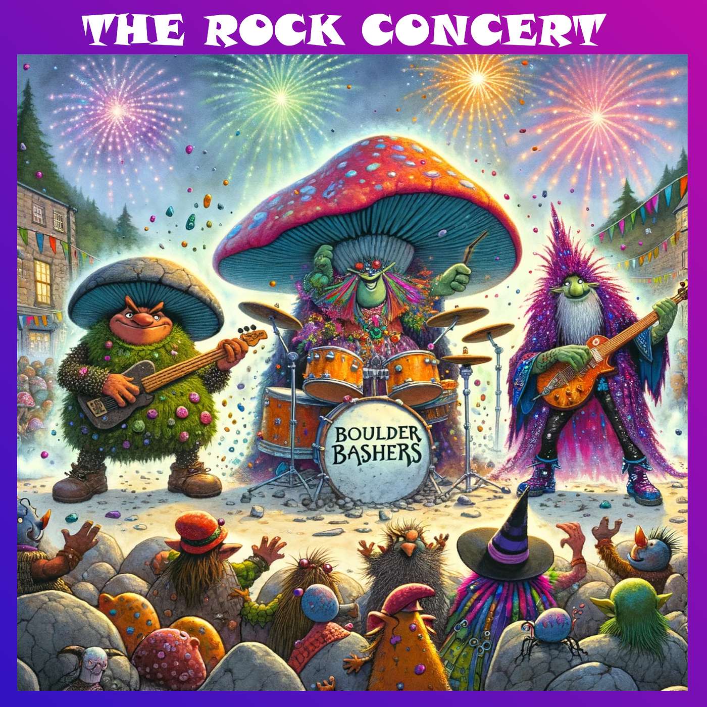 Grumble the Ogre, Trolla the Troll, and Snotbeard the Giant discovered they could make music by smashing rocks! πͺ¨πΆ With Wizzlethorp the Wizard's magic, they prepared an epic concert. π§β¨