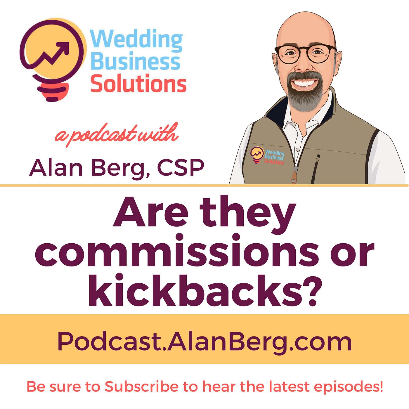 I'm Alan Berg. Thanks for listening. If you have any questions about this or if you'd like to suggest other topics for "The Wedding Business Solutions Podcast" please let me know. My email is Alan@WeddingBusinessSolutions.com. Look forward to seeing you on the next episode. Thanks.