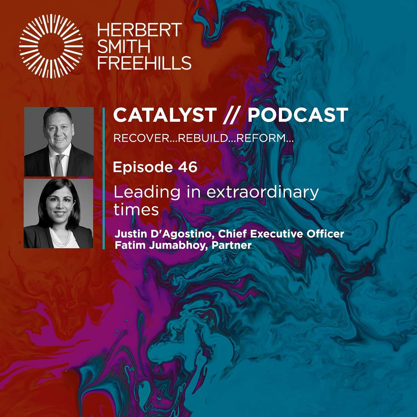 On 1 May 2020, Justin D'Agostino began his role as the new Hong Kong based Global CEO of Herbert Smith Freehills. This was no ordinary start to a leadership role, with his first day in March as transitional chair of the firm's Executive team marked by the WHO's declaration of a global pandemic.Interviewed by Singapore partner Fatim Jumabhoy, Justin will share how he adapted his thinking and direction to lead a global organisation – and a new leadership team – through one of the most extraordinary periods of recent history, and why keeping our people connected and caring for each other was critical to the firm's approach and success to date.