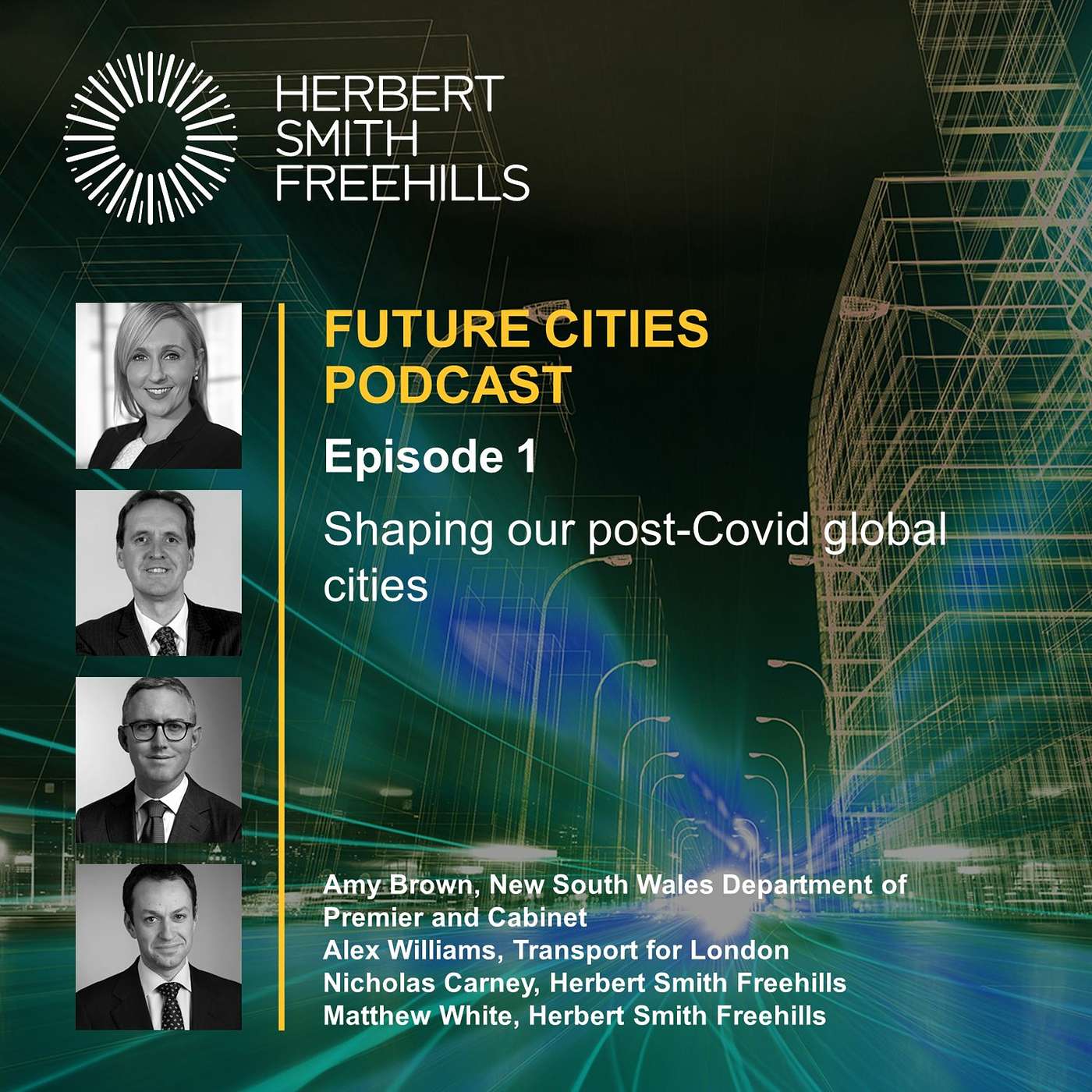 In episode 1 of our Future Cities podcast, Matthew White and Nicholas Carney, partners of Herbert Smith Freehills, are joined by special guests Amy Brown from the New South Wales Department of Premier and Cabinet and Alex Williams from Transport for London to bring you real life perspectives on how two of our global cities, London and Sydney, are responding to the Covid-19 pandemic.
