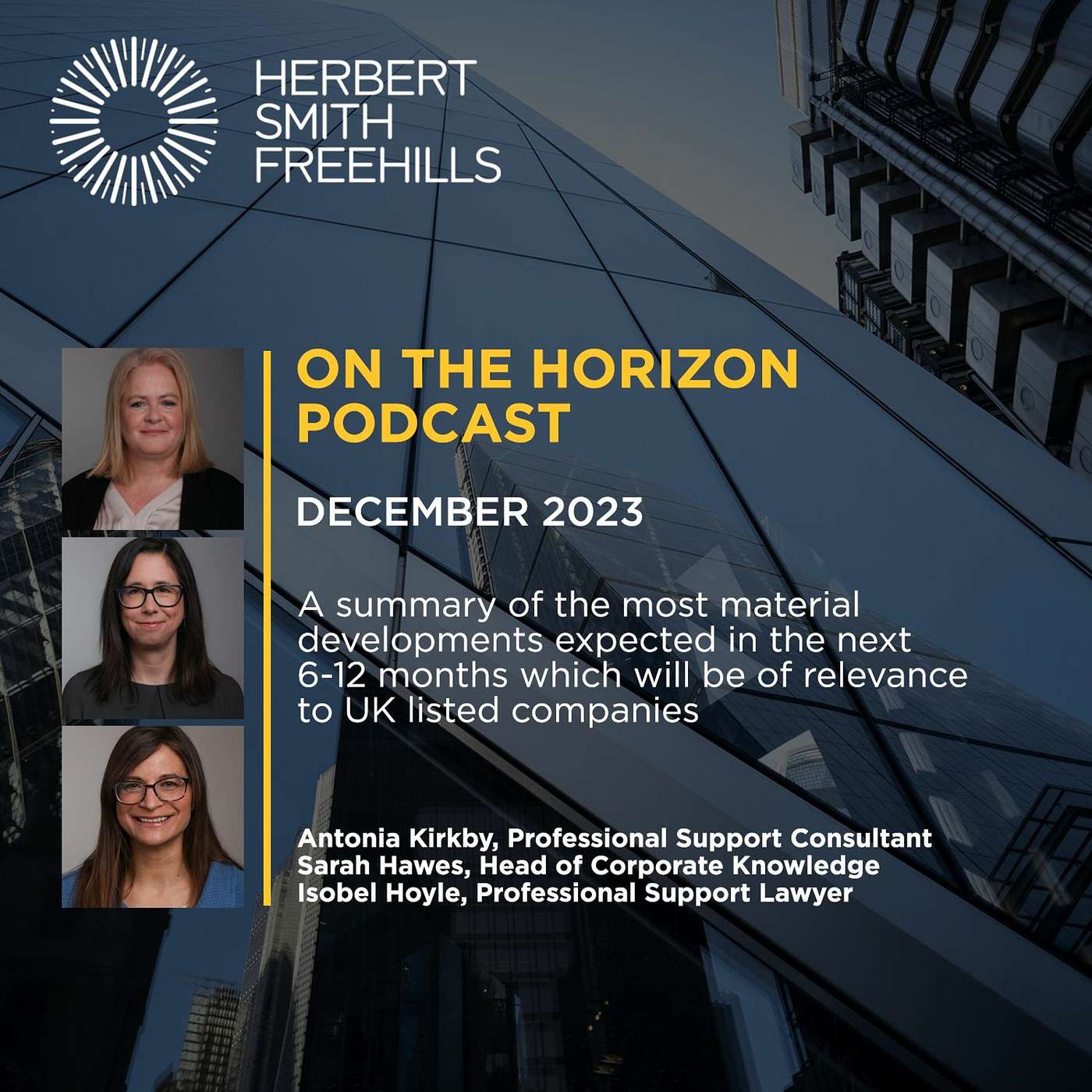 In the latest episode in our ‘on the horizon’ podcast series, we discuss the more material developments that we expect to see in the next 6-12 months that will be of interest to listed companies.Speakers: Sarah Hawes, Isobel Hoyle, Antonia Kirkby