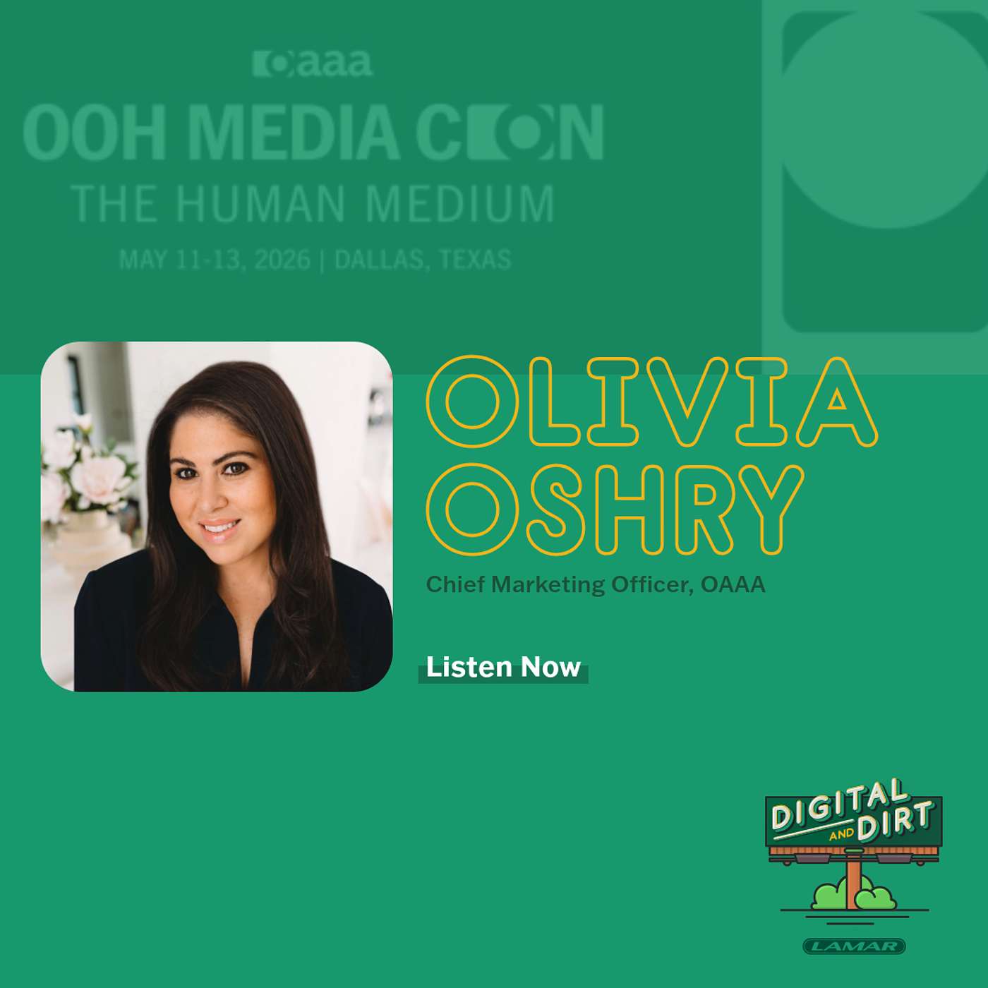 In this week’s episode of the Digital and Dirt podcast, Ian sits down with Olivia Oshry, CMO of the OAAA, to discuss her career, the evolution of media, and why the OAAA is redefining Out of Home as the “Human Medium.”