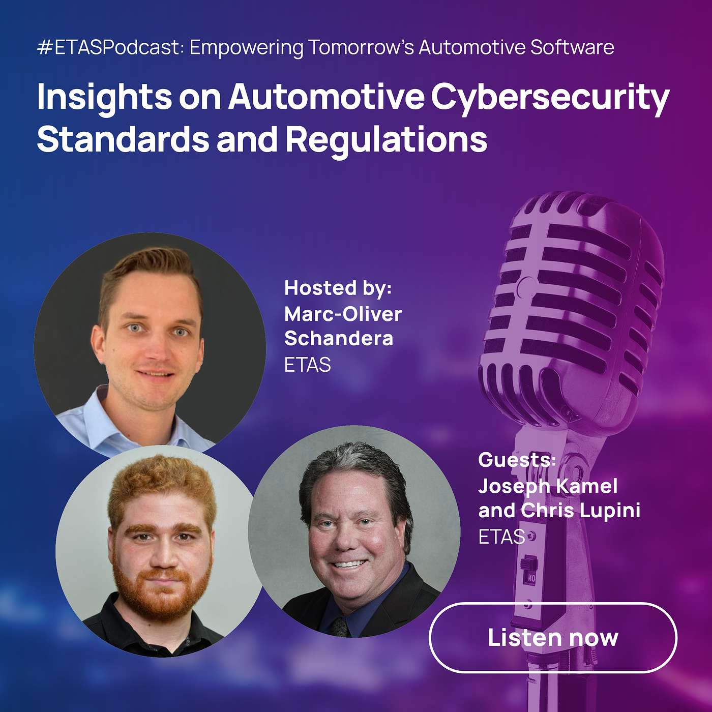 In this episode, you'll hear three ETAS experts talk about the various frameworks and regulations in place and being developed for vehicle cybersecurity. Marc-Oliver Schandera from ETAS Germany, Joseph Kamel from ETAS France and Chris Lupini from ETAS North America discuss why frameworks and regulations are needed and how they can help OEMs and suppliers. With an uptick in cybersecurity attacks, standardizing how things are done and analyzed is becoming even more important. Listen to what the group has to say and let us know your thoughts!