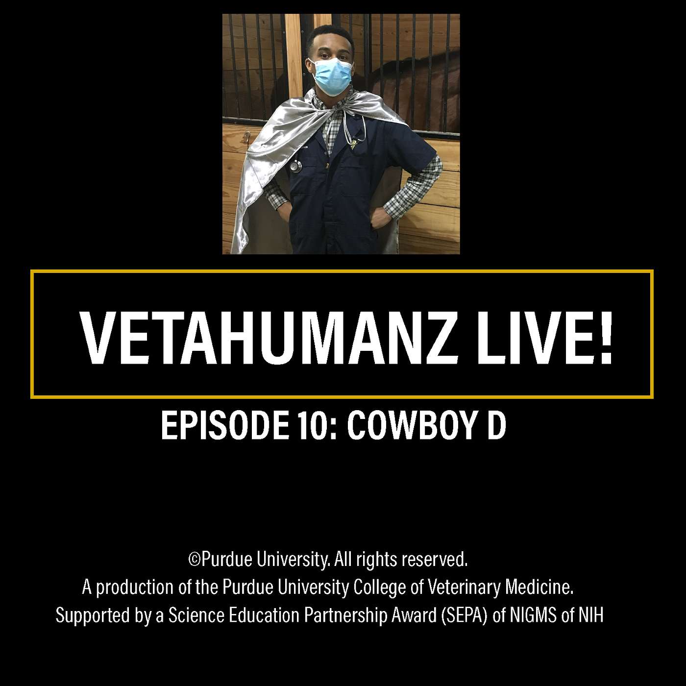 Thanks for listening to VetaHumanz Live! If you enjoyed this episode, be sure to subscribe, rate, and share this podcast with your friends on social media. VetaHumanz Live! is a production of the Purdue University College of Veterinary Medicine and is supported by the Science and Education Partnership Award (SEPA) program of the NIGMS of the NIH.