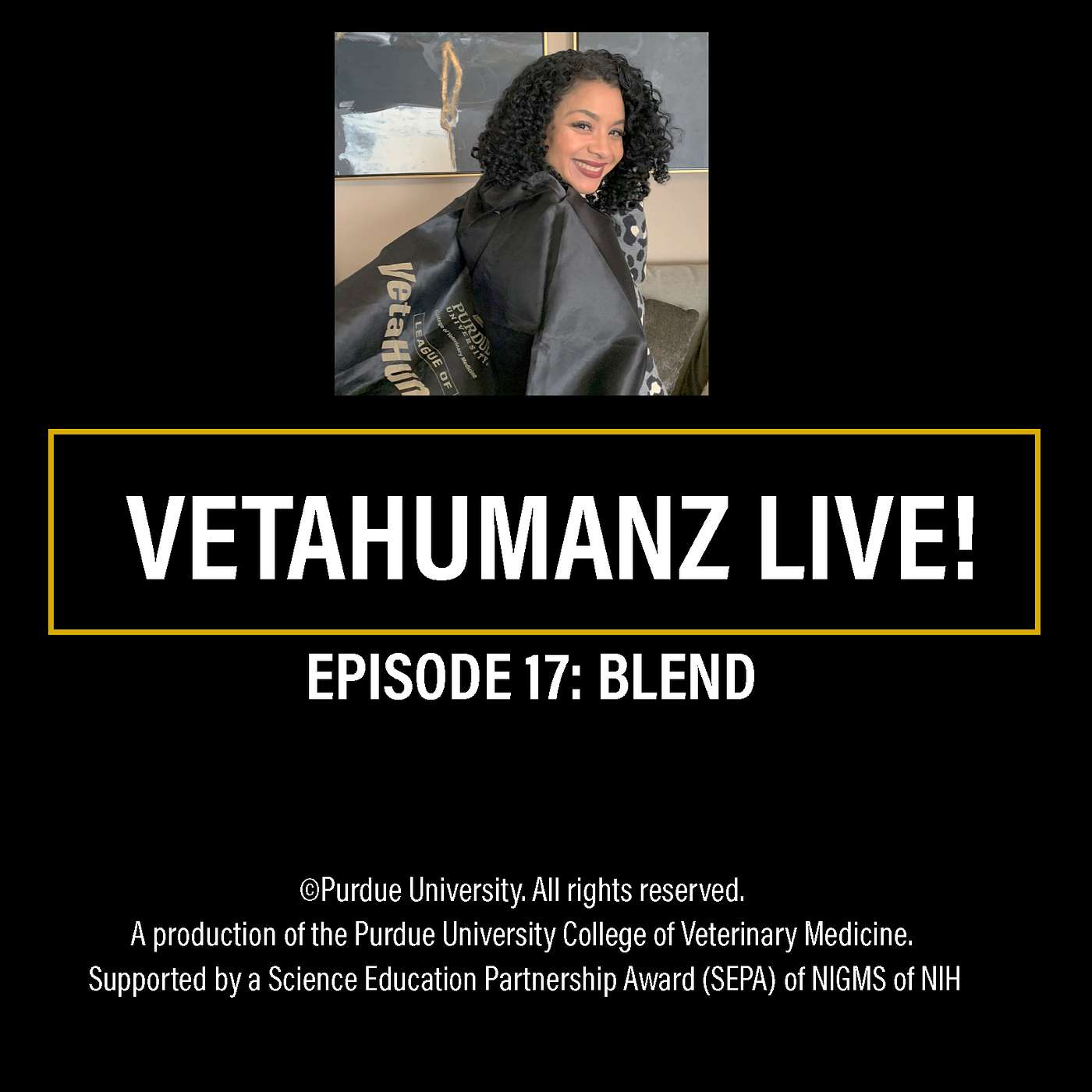 Thanks for listening to VetaHumanz Live! If you enjoyed this episode, be sure to subscribe, rate, and share this podcast with your friends on social media. VetaHumanz Live! is a production of the Purdue University College of Veterinary Medicine and is supported by the Science and Education Partnership Award (SEPA) program of the NIGMS of the NIH. Be sure to visit us at www.VetaHumanz.org! Thank you and Use Your Powers For Good!
