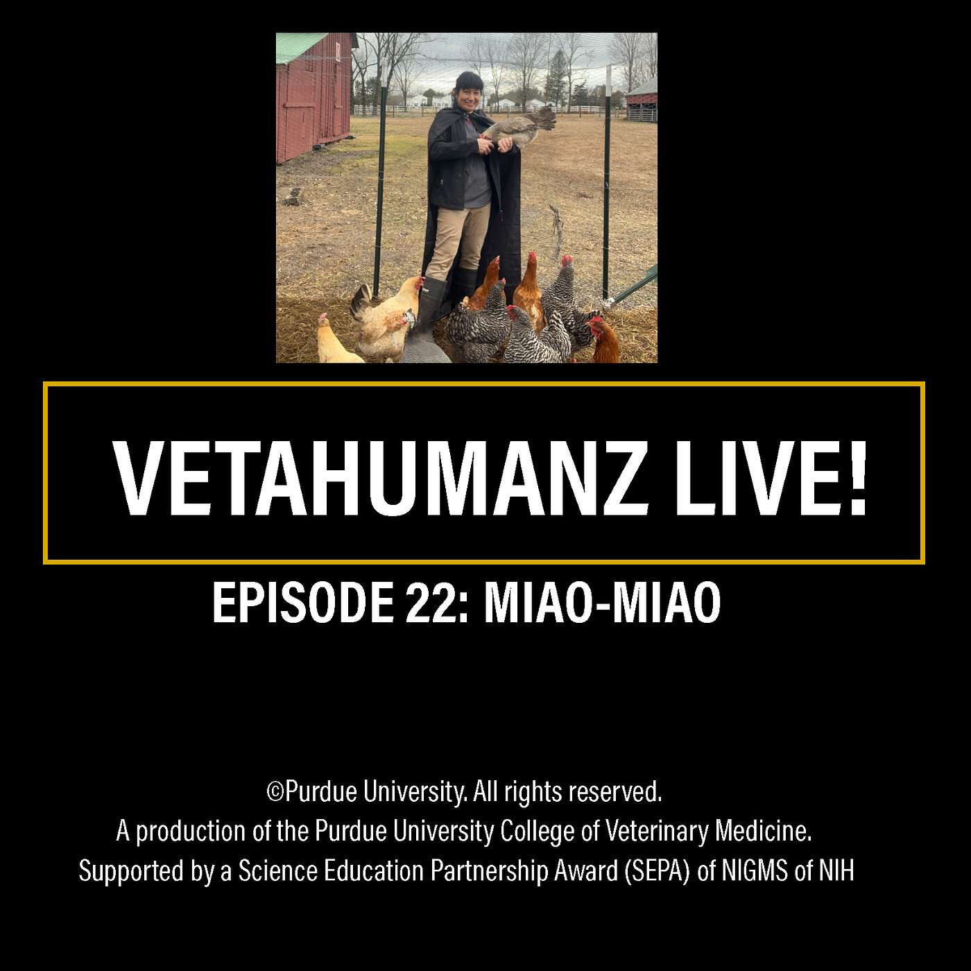 VetaHumanz Live! is a production of the Purdue University College of Veterinary Medicine and is supported by the Science and Education Partnership Award (SEPA) program of the NIGMS of the NIH. Be sure to visit us at www.VetaHumanz.org! Thank you and Use Your Powers For Good!