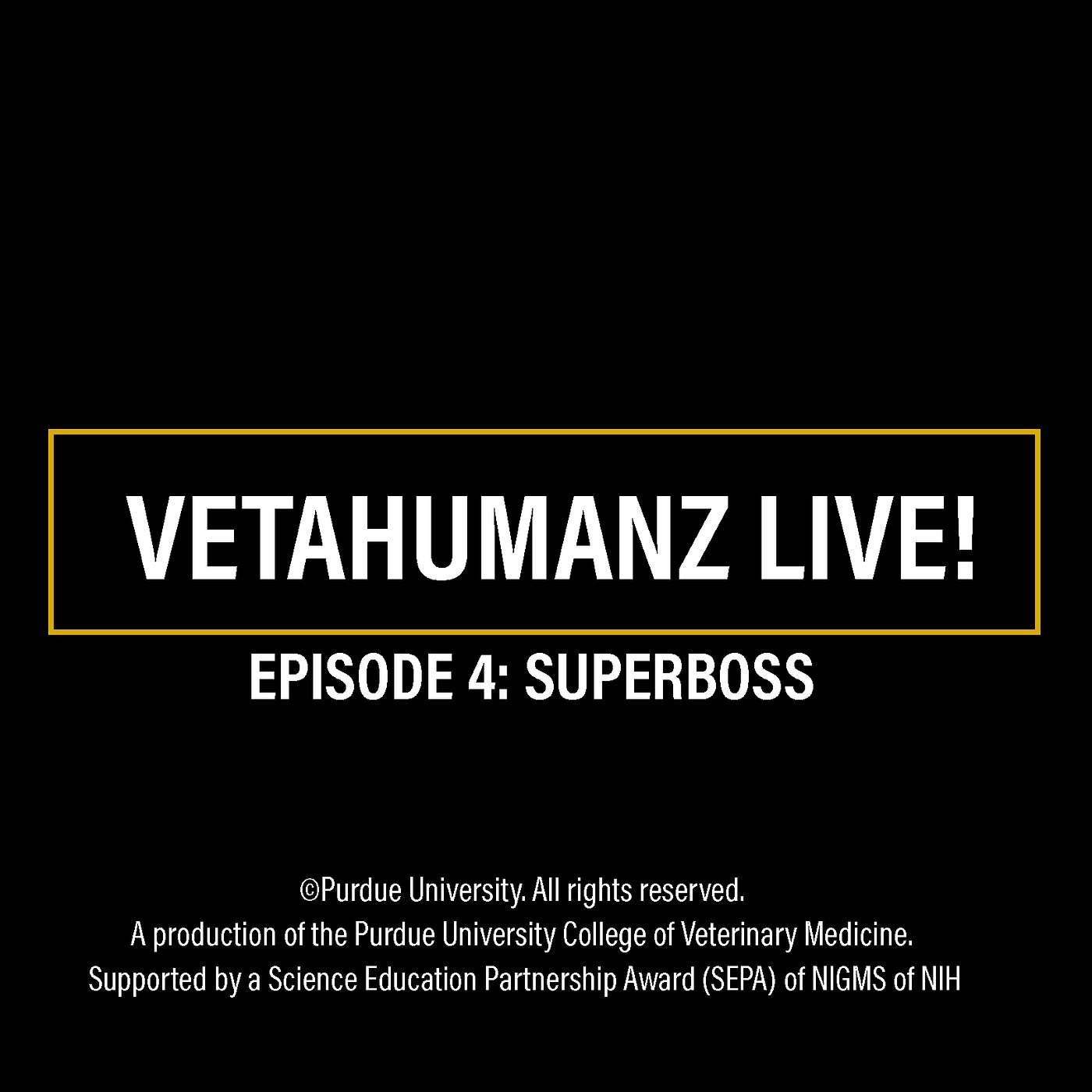 Thanks for listening to VetaHumanz Live! If you enjoyed this episode, be sure to subscribe, rate, and share this podcast with your friends on social media. VetaHumanz Live! is a production of the Purdue University College of Veterinary Medicine and is supported by the Science and Education Partnership Award (SEPA) program of the NIGMS of the NIH.