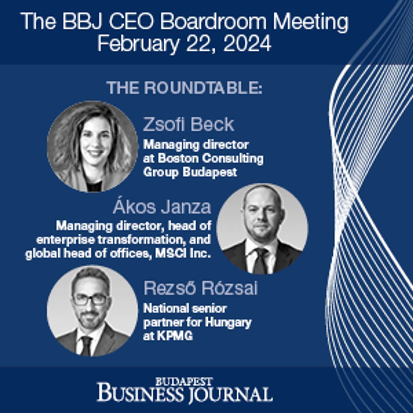 Our roundtable speakers were Zsófi Beck, managing director at Boston Consulting Group Budapest, Rezső Rózsai, national senior partner for Hungary at KPMG, and Ákos Janza, managing director, head of enterprise transformation, and global head of offices at MSCI Inc.