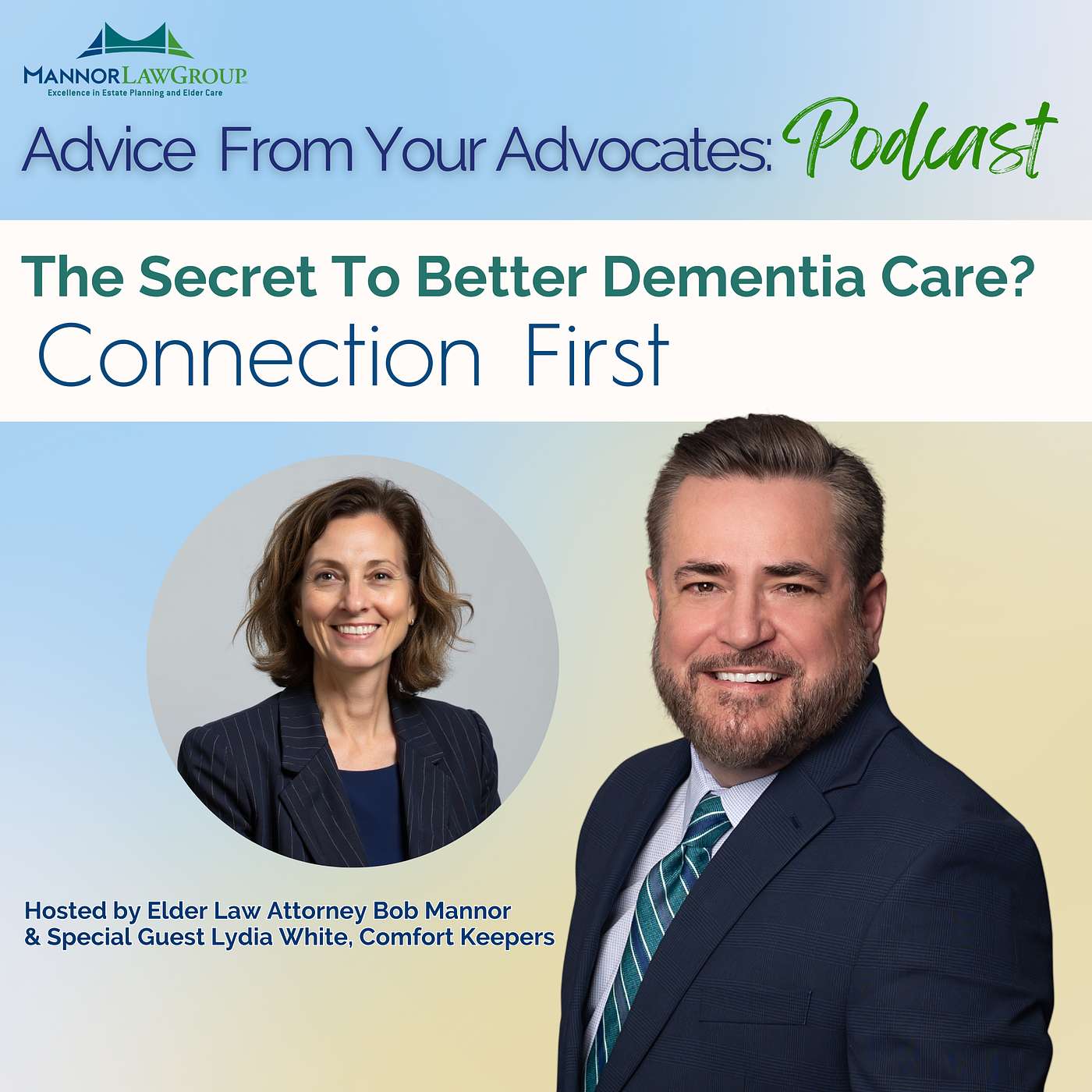 In this episode of Advice From Your Advocates, Elder Law Attorney Bob Mannor sits down with Lydia White, Co-Owner and Client Care Director of Comfort Keepers, to talk about what truly makes caregiving effective—especially when dementia is involved.