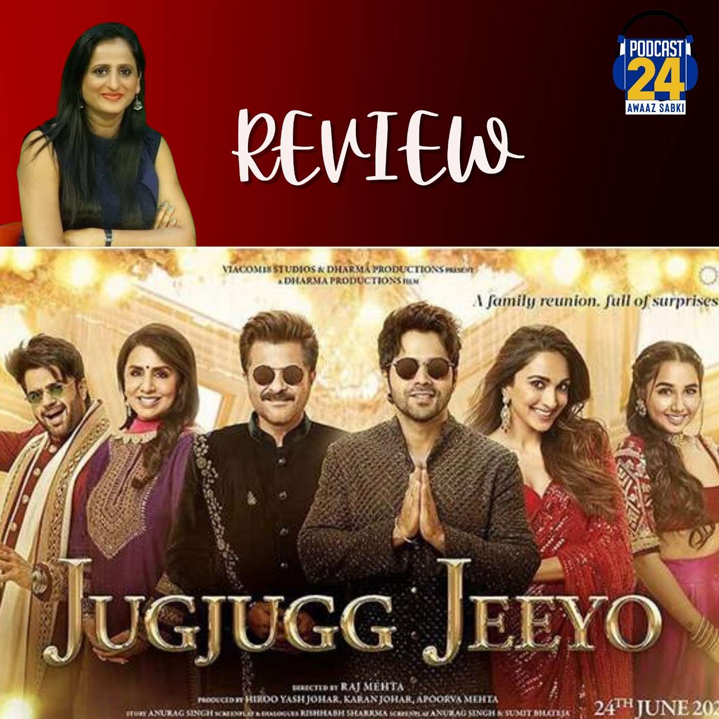 करण जौहर की फिल्म "जुग जुग जियो" रिलीज हो चुकी है। करण जौहर की फिल्म "जुग जुग जियो" एक फैमिली कॉमेडी ड्रामा है। इस फिल्म में अनिल कपूर,नीतू कपूर, वरुण धवन, कियारा आडवाणी मुख्य किरदार निभा रहे हैं और साथ ही प्राजक्ता कोहली और मनीष पॉल भी इस फिल्म का हिस्सा है। फिल्म की शूटिंग चंडीगढ़ और कनाडा में हुई है। फिल्म की कहानी शादी,तलाक और परिवार से जुड़ी है। फिल्म की कहानी कैसी है? फिल्म में कलाकारों ने कैसा काम किया है ? फिल्म में कॉमेडी कितनी रोचक है? जानिए "जुग जुग जियो" का पूरा मूवी रिव्यू "ENTERTAINMENT 24" में नीतू कुमार से सिर्फ पॉडकास्ट 24 पर।