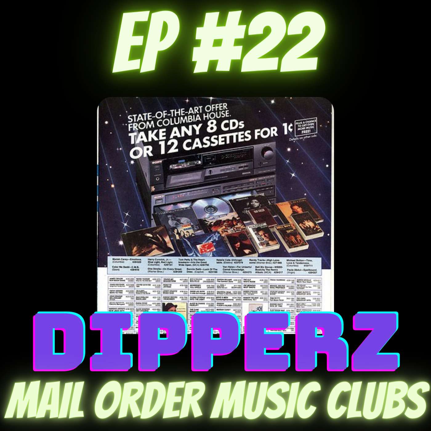 THIS IS AN ATTEMPT TO COLLECT A DEBT! Dip along with Lauren and Sarah as they confess how much they owe Columbia House and BMG for sweet, sweet jams ordered through the mail in their youth. In the mix this episode are mouth-sound virtuoso Michael Winslow, Philip Glass, Stone Temple Pilots, that TV 80's commercial for the answering machine messages that were funny parody songs, some serious scatting, Terrance Trent D'arby and oh so much more! Bonus: they continue to butcher the popular music you know and love! Check out the Album of the Month* along with the Dipperz!