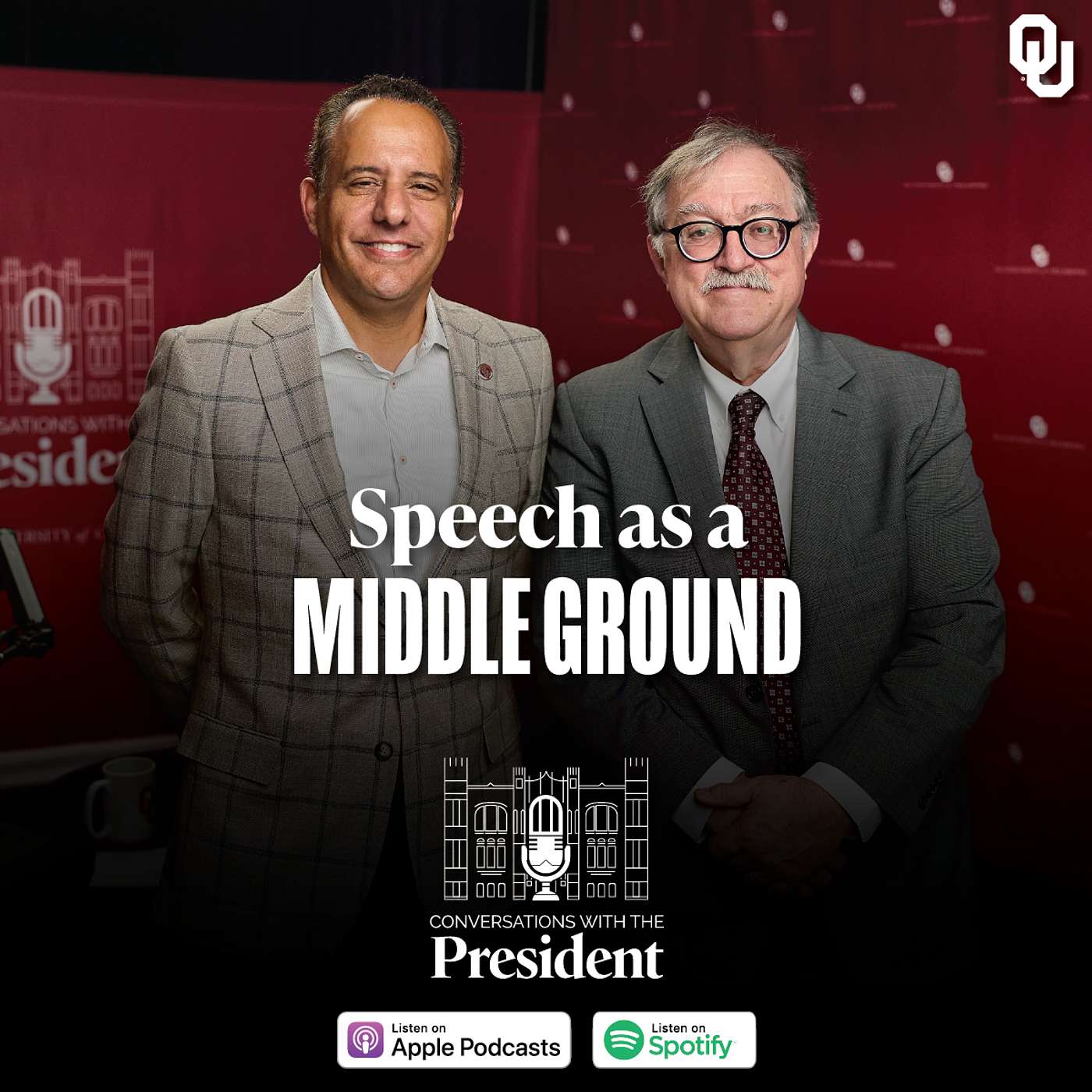 In this episode of Conversations with the President, President Joseph Harroz Jr. welcomes Dr. Wilfred McClay — acclaimed historian, author, and former OU faculty member — for a timely discussion on the meaning and importance of free speech in today’s world. Drawing from his keynote address, “Speech as a Middle Ground,” Dr. McClay explores how speech serves as a vital bridge between thought and action, and how true dialogue can help bridge divides in an era of polarization and rapid technological change.