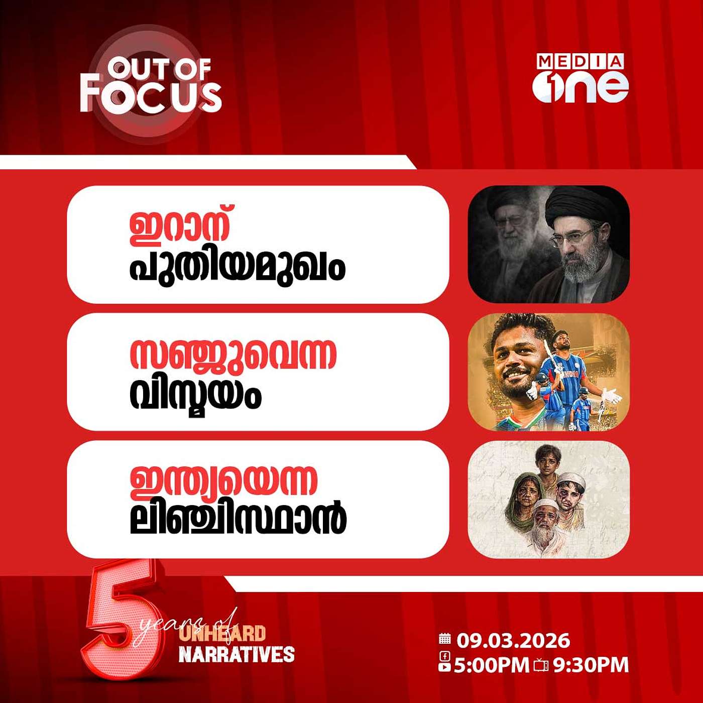1. ഇറാന് പുതിയമുഖം2. സഞ്ജുവെന്ന വിസ്മയം3. ഇന്ത്യയെന്ന ലിഞ്ചിസ്ഥാൻ