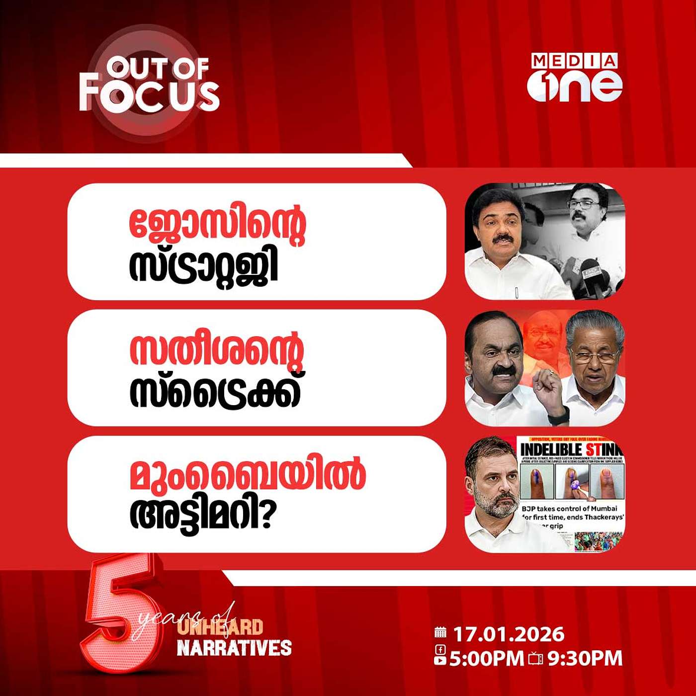 1. ജോസിന്റെ സ്ട്രാറ്റജി2. സതീശന്റെ സ്ട്രൈക്ക്3. മുംബൈയിൽ അട്ടിമറി?