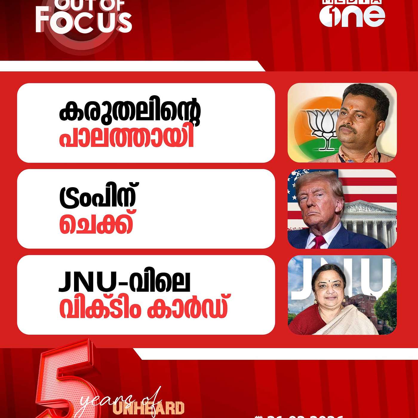 1. കരുതലിന്റെ പാലത്തായി2. ട്രംപിന് ചെക്ക്3. ജെഎൻയുവിലെ വിക്ടിം കാർഡ്