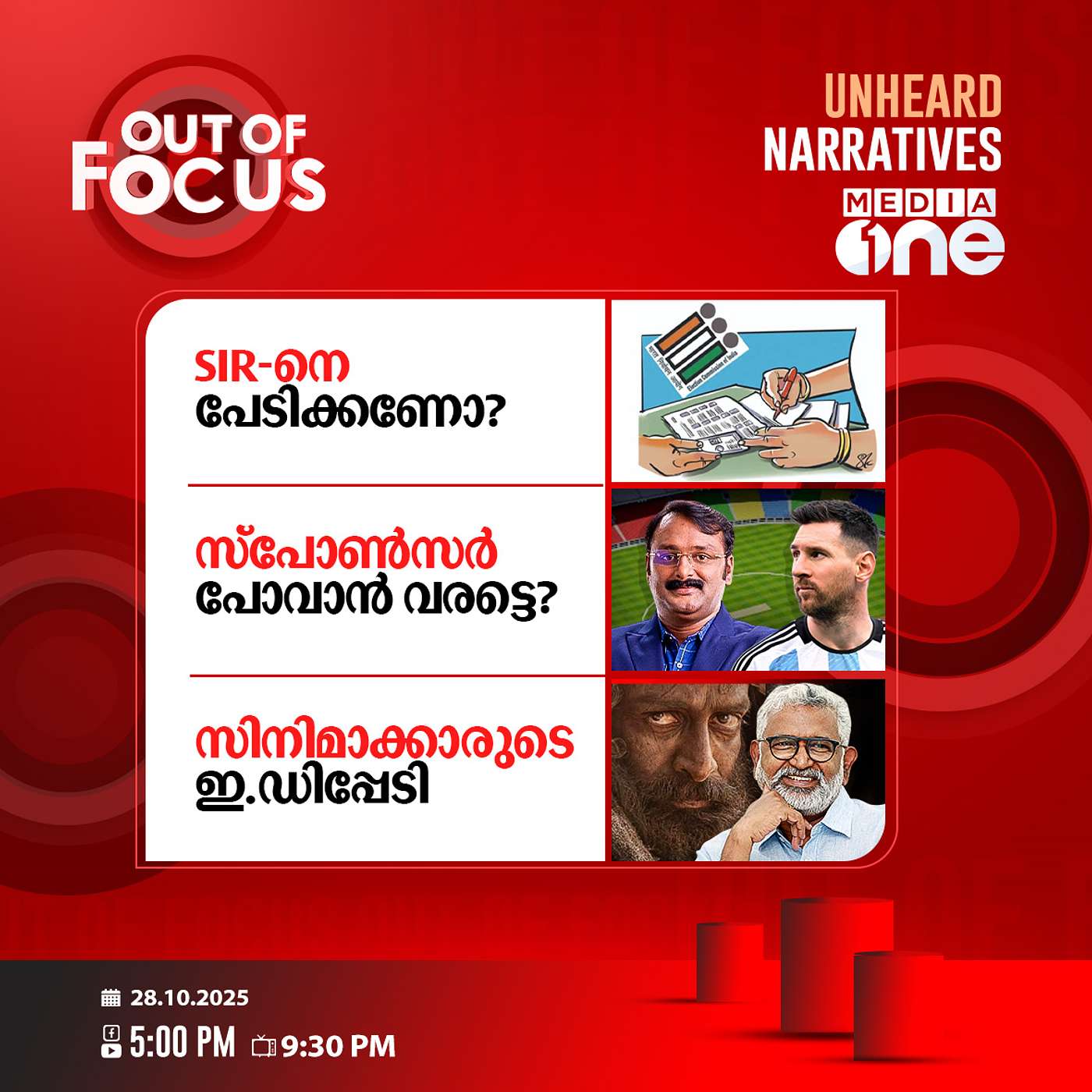 1. എസ്ഐആറിനെ പേടിക്കണോ?2. സ്പോൺസർ പോവാൻ വരട്ടെ? 3. സിനിമാക്കാരുടെ ഇ.ഡിപ്പേടി