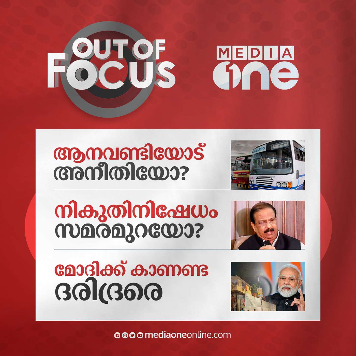Out Of Focus 10-02-20231. ആനവണ്ടിയോട്അനീതിയോ?2. നികുതിനിഷേധംസമരമുറയോ?3. മോദിക്ക് കാണണ്ടദരിദ്രരെPanel - P T Nasar, Nishad Rawther, S A Ajims