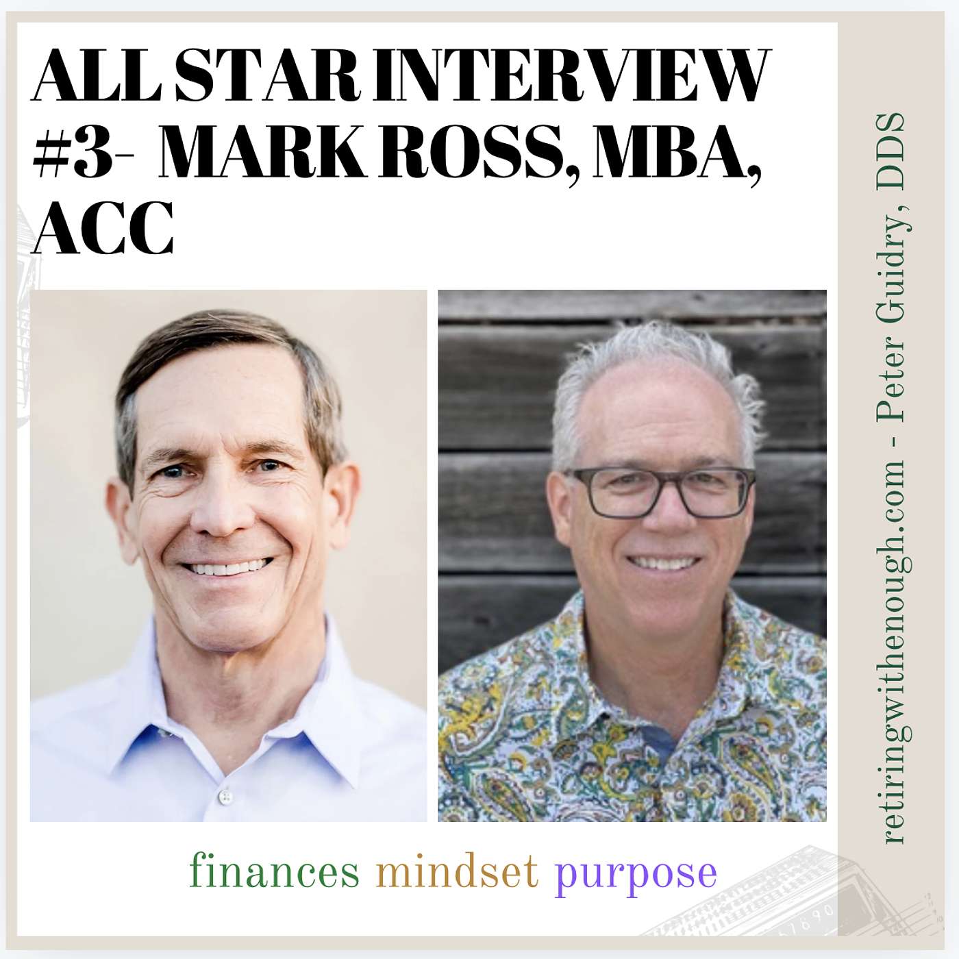 Join me as I interview Mark Ross, MBA, ACC. Mark is an “Encorepreneur,” Thought Partner/Coach, Team Host with the Rock Retirement Club, and a Strategic Coach with the REALIFE Process. Mark shares his insight as a retirement coach and a nine year retiree.