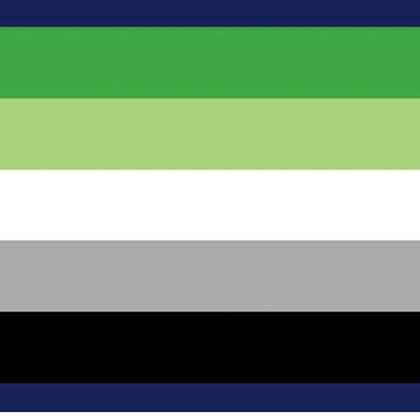 This episode’s artwork is an aromantic pride flag.