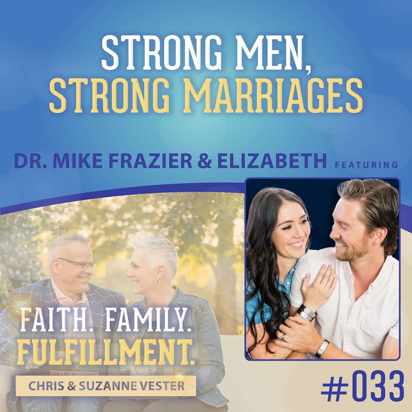 Mike and his wife, Elizabeth, believe in encouraging men to become the leaders of both their lives and their families. Mike mentors and coaches men through his podcast, Strong Men Strong Marriages, and individually to shift their mindset to achieve the life they seek.Dr. Mike helps high achieving Christian men have more intimate marriages. He graduated Magna Cum Laude in Neuroscience from Brigham Young University, attended UCLA medical school and completed psychiatry residency training at UC Irvine. Married in 2005 and having 5 children, Mike and his wife Elizabeth faced significant marriage struggles, including issues with trust, communication and intimacy. As they worked together to rebuild their marriage using Christian principles and the best therapy and coaching practices, they found what REALLY works to create amazing mental, emotional and sexual intimacy in marriage. Mike now helps other high achieving Christian men to have that same connection with their wife through his coaching practice and podcast, Strong Men Strong Marriages. Listen to this uplifting Faith. Family. Fulfillment. episode with Mike and Elizabeth Frazier aboutHere is what to expect on this week’s show:- Having strengths in your faith and how you can build on these strengths.- Having trust and communication, and why it is important to your marriage.- How Mike and Elizabeth gained more trust in one another and how they worked through their own early relationship struggles. Connect with Mike and Elizabeth:Mike’s Website: https://mikefraziermd.com/about-dr-mike Learn more about your ad choices. Visit megaphone.fm/adchoices