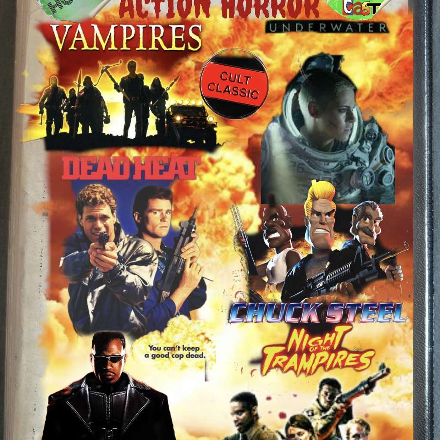 "Welcome to an action packed and spine-chilling episode of Carlisle Cult Cinema Club Presents: Action Horror! I'm your host, PD, and as always, I'm accompanied by my trusty Co Host’s, the lads Woff and Daz. Get ready to delve into the thrilling world of action-packed horror as we discuss some bone-rattling films that will leave you on the edge of your seat. From the undead mayhem of 'Dead Heat' (1988) to the blood-soaked battles in 'John Carpenters Vampires' (1998) and the vampire-hunting adventures of 'Blade' (1998), we've got it all covered. But that's not all! We'll also sink our teeth into the intense wartime horror of 'Overlord' (2018), the gripping deep-sea terror of 'Underwater' (2020), and the animated madness of 'Chuck Steel: Night of the Trampires.' So sit back, relax, and prepare yourself for a thrilling ride through the dark realms of action horror, delivered to you in our own unusual style. Let the nightmare begin! #ActionHorror #FilmPodcast"