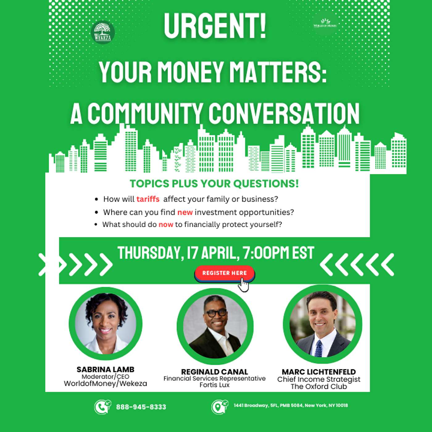 As a result, I will host and moderate "Your Money Matters: A Community Conversation" this Thursday, April 17, at 7:00 PM EST.
