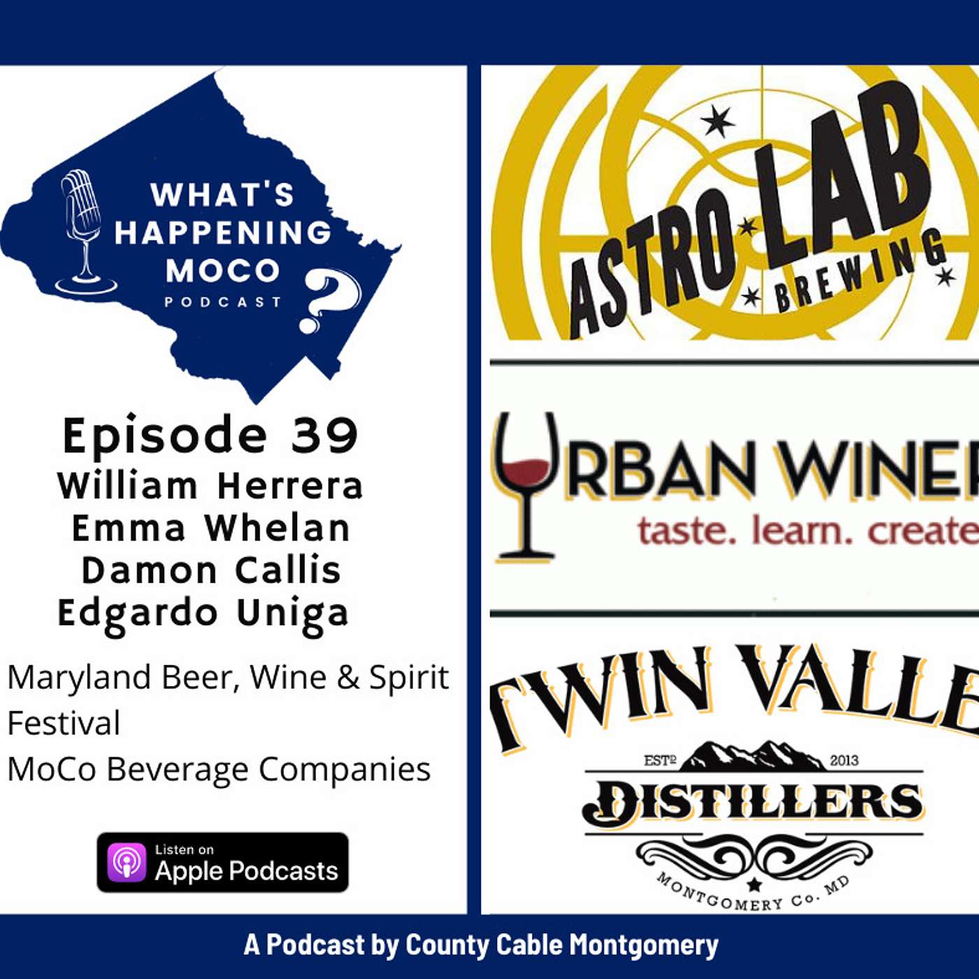 Montgomery County-based beverage companies Astro Lab Brewing, Twin Valley Distillers, and the Urban Winery will be featured on the latest episode of the “What’s Happening MoCo,” podcast. Company representatives will discuss how they started, talk about popular products, and relate their experiences managing during the COVID-19 health crisis.