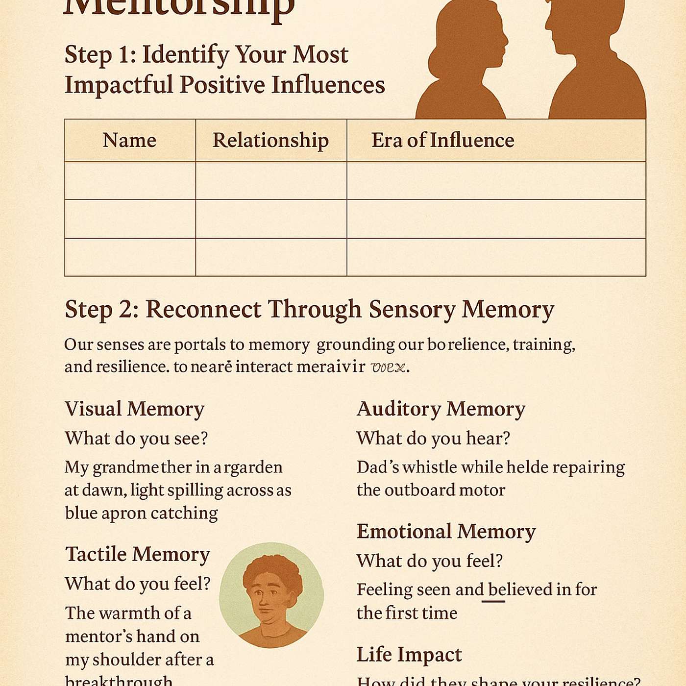 Step 2: Describe the InfluenceFor each person listed, answer the following prompts in writing:Visual Memory: Describe a vivid memory involving this person. What do you see? Include details about the setting, colors, and any significant objects.”