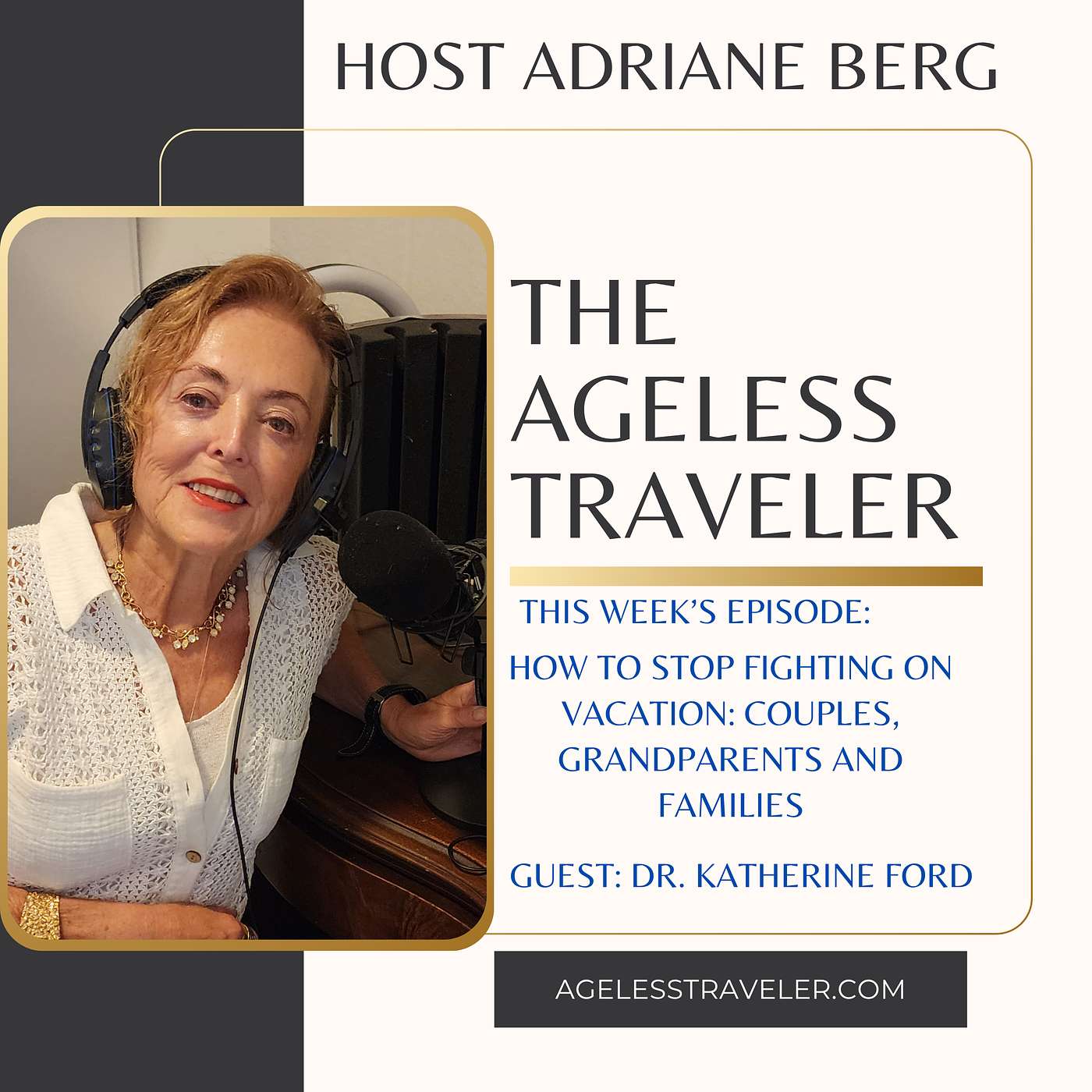 Don’t let family dynamics ruin your vacation. On this week’s episode of The Ageless Traveler, we go where other travel shows fear to tread! Adriane reveals the stress points in her long marriage and the travel disappointments she encounters. Dr. Ford shows us how to be open and mindful and enjoy every minute of a couple’s and family vacation.