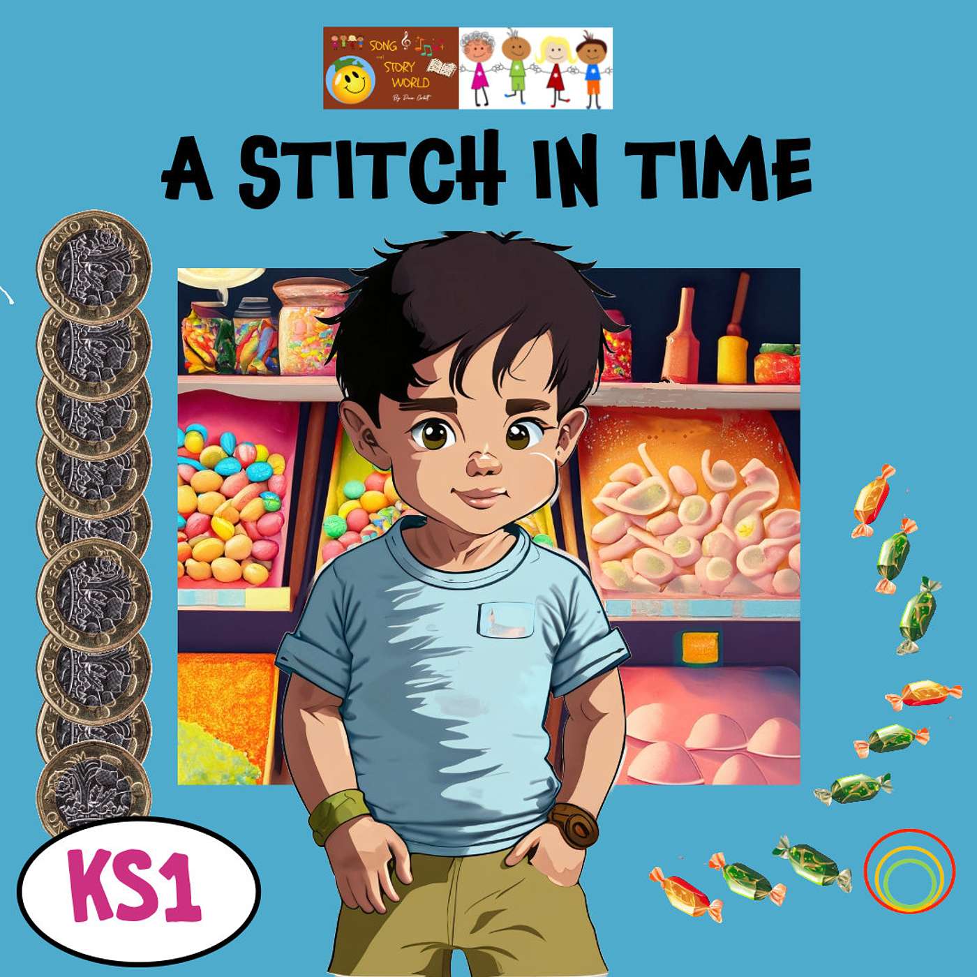 At the shop Paul found that most of his pocket money, nine shiny pound coins, had slipped out through the hole.