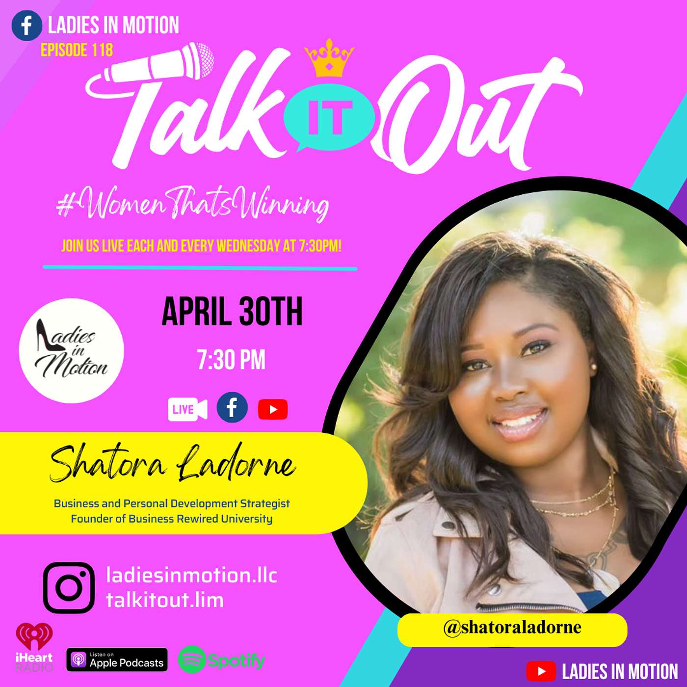 It’s our favorite day of the week, so you know that means we’re shining light on #WomenThatsWinning in the local community!! Tune in now as we sit with Texas native, Shatora Ladorne about helping entrepreneurs turn their vision into ACTION and clarity into CASH FLOW with her business, Business Rewired University!
