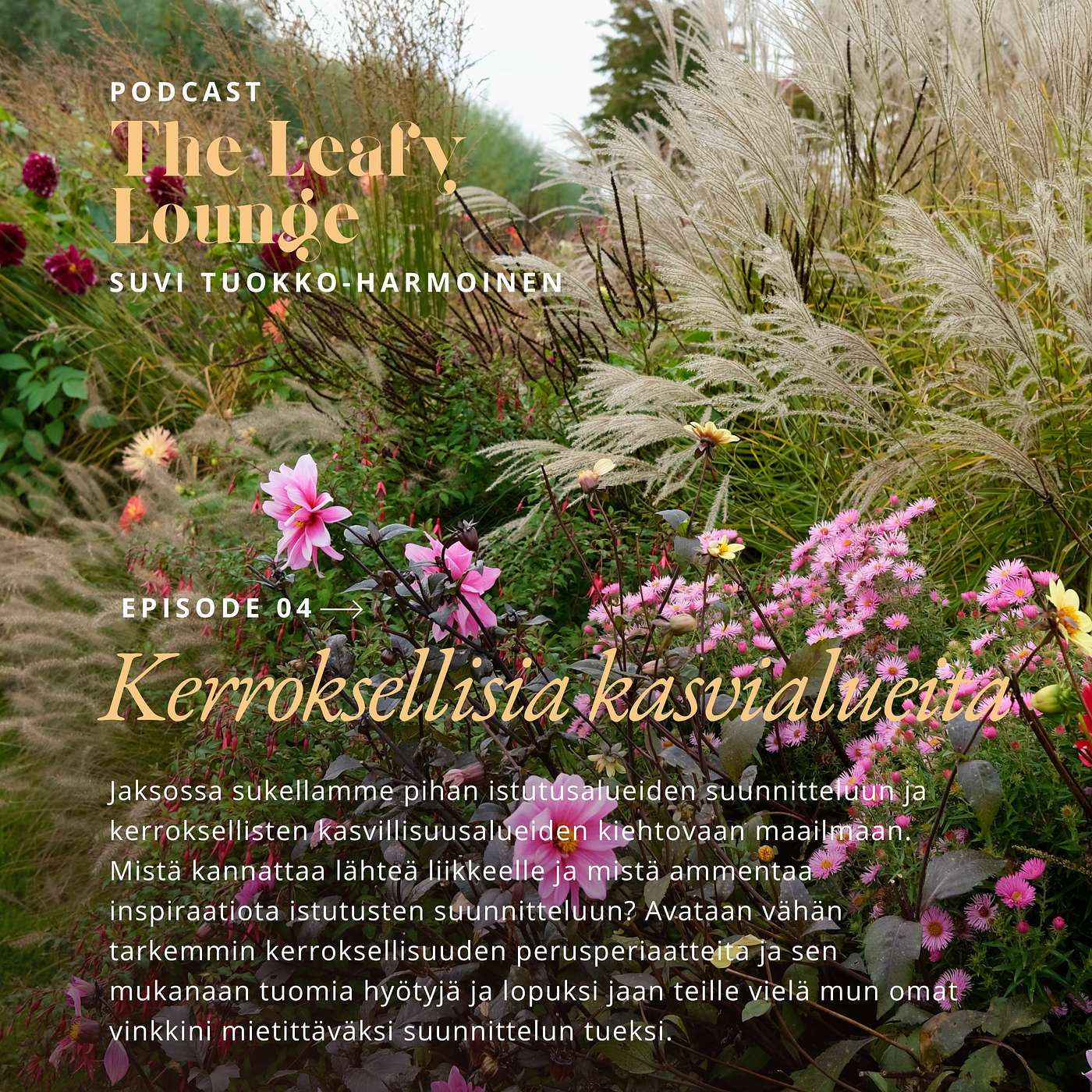 Jaksossa sukellamme pihan istutusalueiden suunnitteluun ja kerroksellisten kasvillisuusalueiden kiehtovaan maailmaan. Mistä kannattaa lähteä liikkeelle ja mistä ammentaa inspiraatiota istutusten suunnitteluun? Avataan vähän tarkemmin kerroksellisuuden perusperiaatteita ja sen mukanaan tuomia hyötyjä. Lopuksi jaan teille vielä mun omat vinkkini mietittäväksi suunnittelun tueksi.