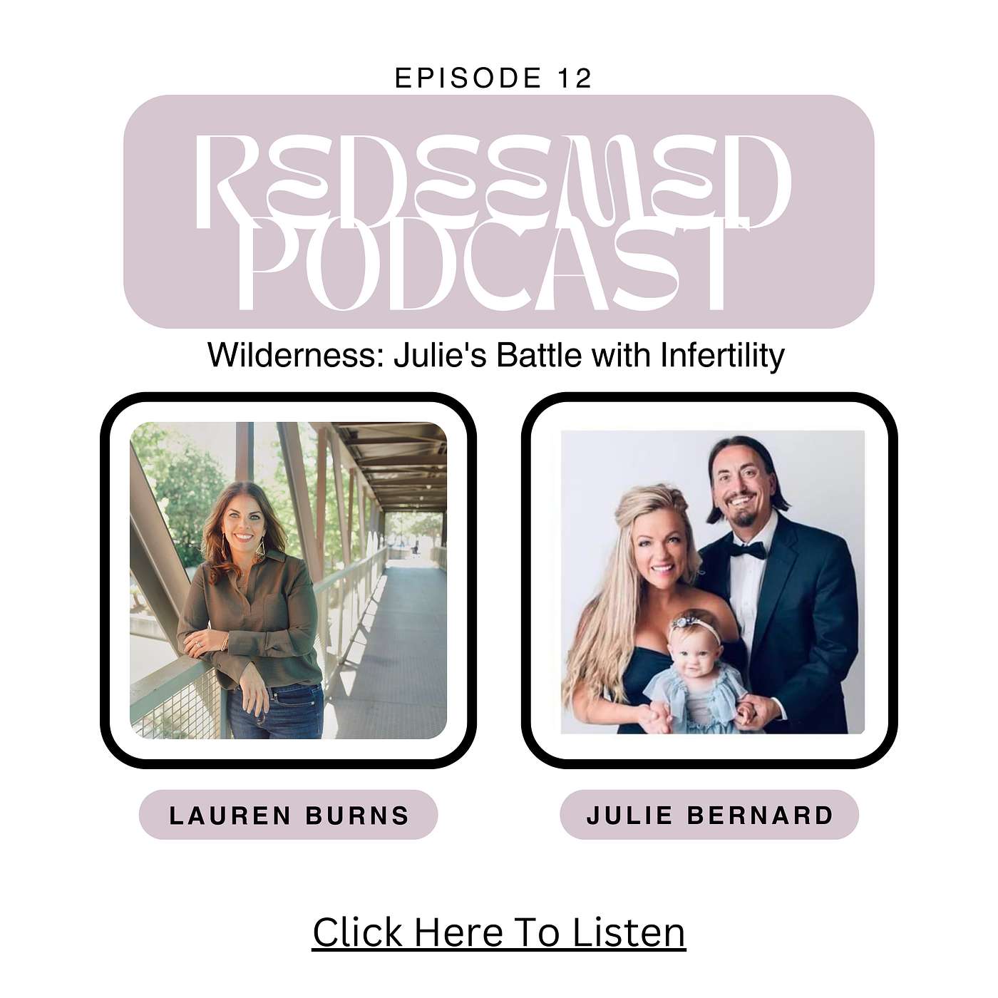 In this heartfelt podcast episode, host Lauren invites her longtime friend Julie to share her seven-year struggle with infertility alongside her husband Jeremy. Julie discusses their journey of longing for a child, navigating through medical treatments, and ultimately putting their trust in God. Despite numerous challenges and setbacks, including failed fertility treatments, financial burdens, and emotional turmoil, Julie speaks about how their faith and support system kept them hopeful. Their persistence eventually led to the birth of their miracle daughter, Julianna Bootsie. The episode also touches on the broader conversation around faith, trust in God's plans, and the importance of community support during difficult times.