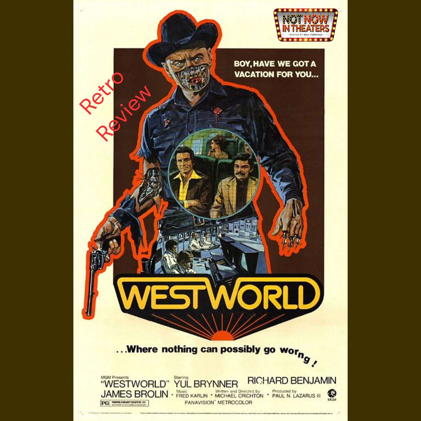Despite being a mega best-selling author, Michael Crichton (Jurassic Park) stepped into the director's chair to realize his first story of a theme park gone wrong.