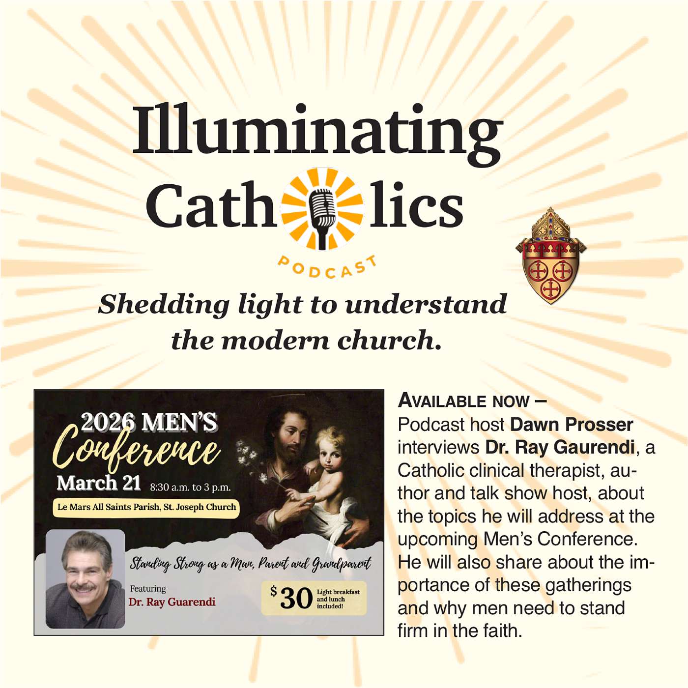 Dawn Prosser interviews Dr. Ray Gaurendi who will be the keynote speaker of the 2026 Men's Conference slated for March 21 at All Saints Parish, St. Joseph Church, in Le Mars, Iowa. Learn about the theme of the conference, why men would be interested in attending the gathering and why it's important for men to stand firm in their faith.